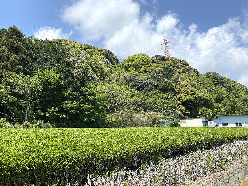 こちらは藤棚ではありませんが、柳沢の妙蓮寺の近くの山肌にも藤の花を発見。ワイルド感がありますね。青々と茂った茶畑とのコラボレーションはザ・愛鷹地区って感じ。