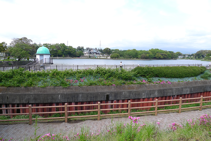 スタートは門池。天気がよかったり、風が凪いでいたりと条件がそろえば富士山が水面にうつって逆さ富士なんかも見られるかも。