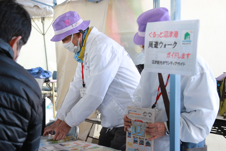 案内をしてくれるのは、沼津観光ボランティアガイドの皆さん。先日は、Sea級グルメフェスタin沼津でも沼津港周辺のガイドをかってでるなど精力的に活動しています。