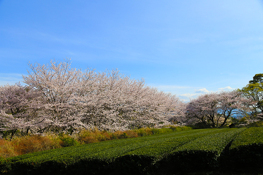 工場内だというのに茶畑と桜、そして駿河湾の眺望といったぜいたくな景色まで楽しめます。