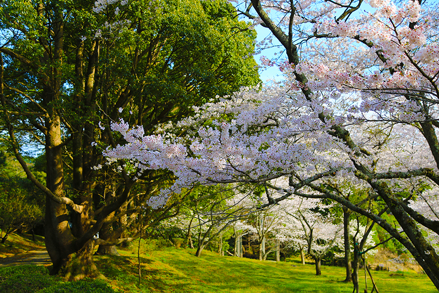 入り口付近だけじゃなく、敷地内には何本もの桜の木があって、どれも満開近く(4月2日撮影)。
