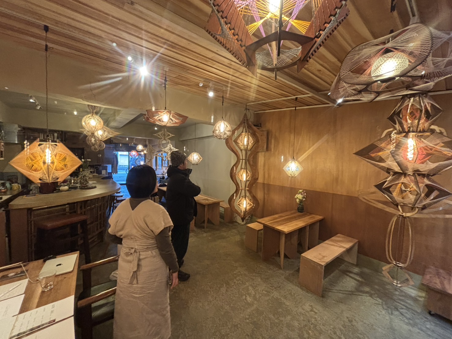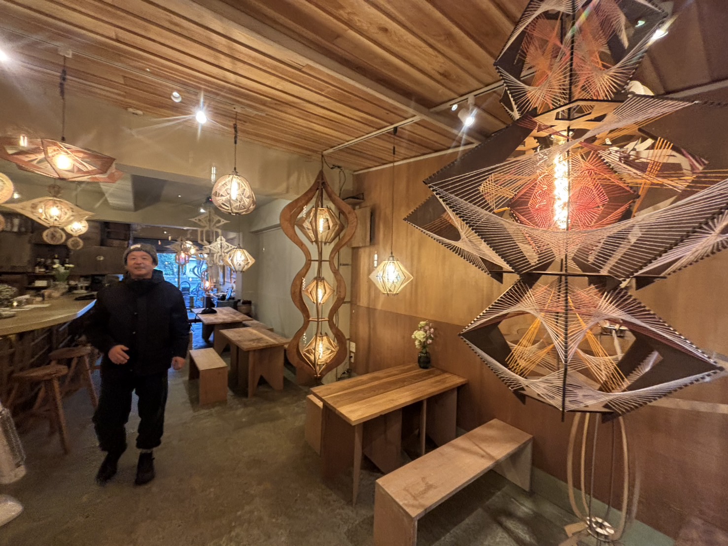 ギャラリーの中が、おしゃんな照明でいっぱい。