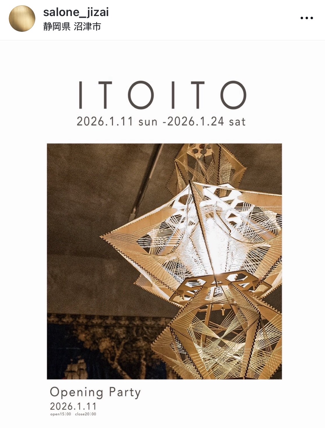 あした24(土)まで。こっちゃん@元ぬまつーがやってるギャラリーでおしゃんな照明「itoito」の展示やってる。とにかくすごいから行ってみてほしい。(沼津市錦町)