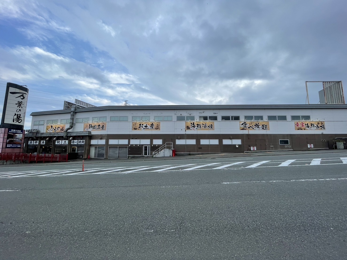 道路の向こう側には、沼津・湯河原温泉 万葉の湯がある。