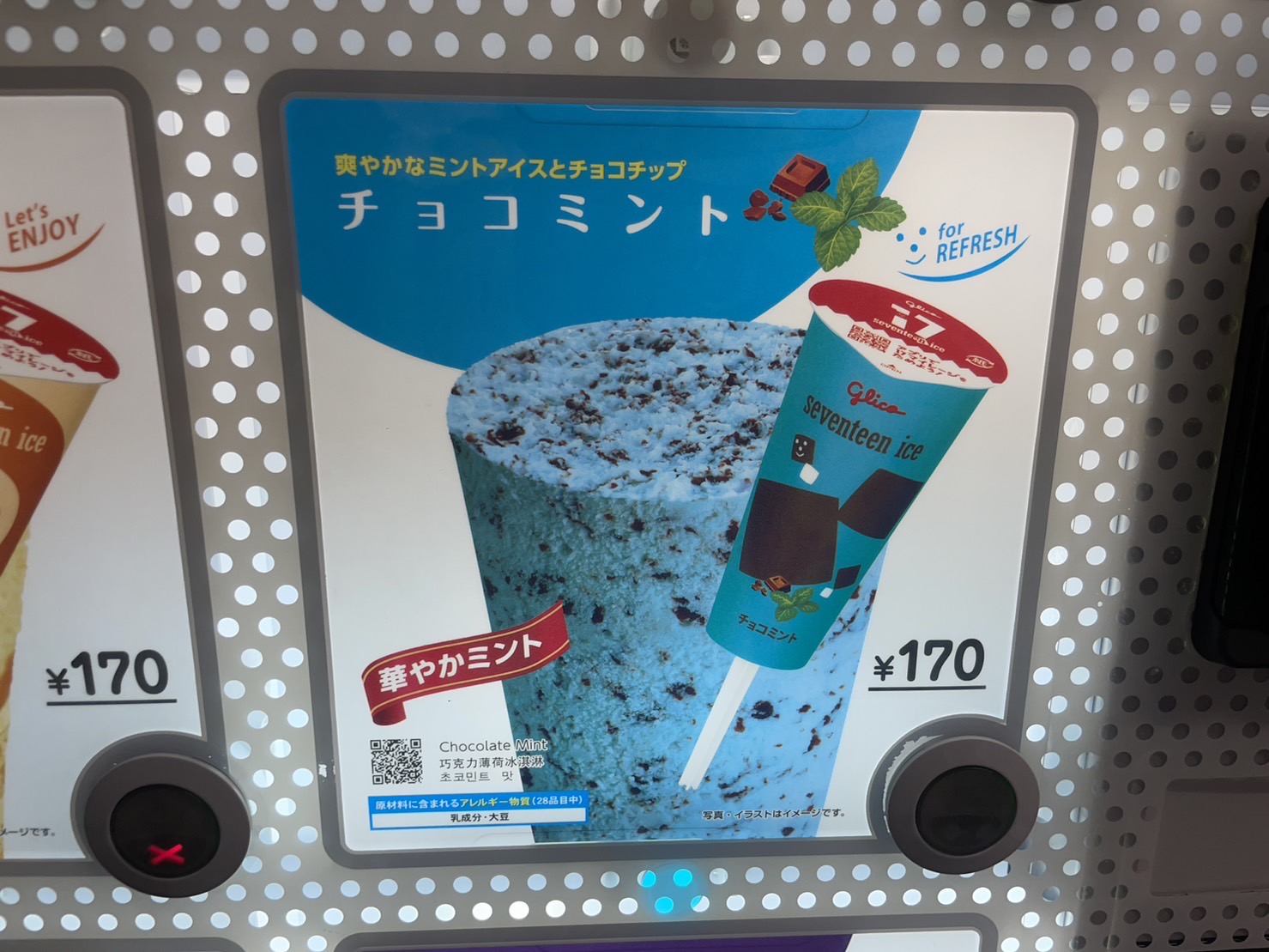 新商品が出た時期や設置場所によって、微妙にアイスのラインナップが違うのもたのしいセブンティーンアイス。チョコミントが好きだったのは小学校の頃、なかよしだったU君。元気かなぁ。