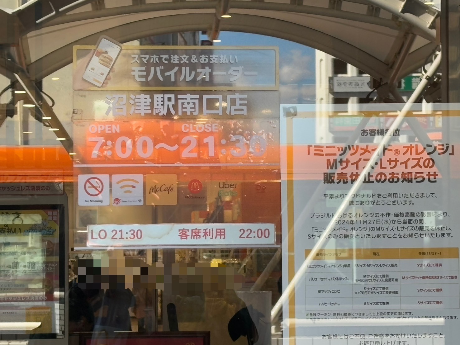 マクドナルド沼津駅南口店の営業時間は7:00〜22:00だそう。沼津にマックは何店舗あるんだろう。
