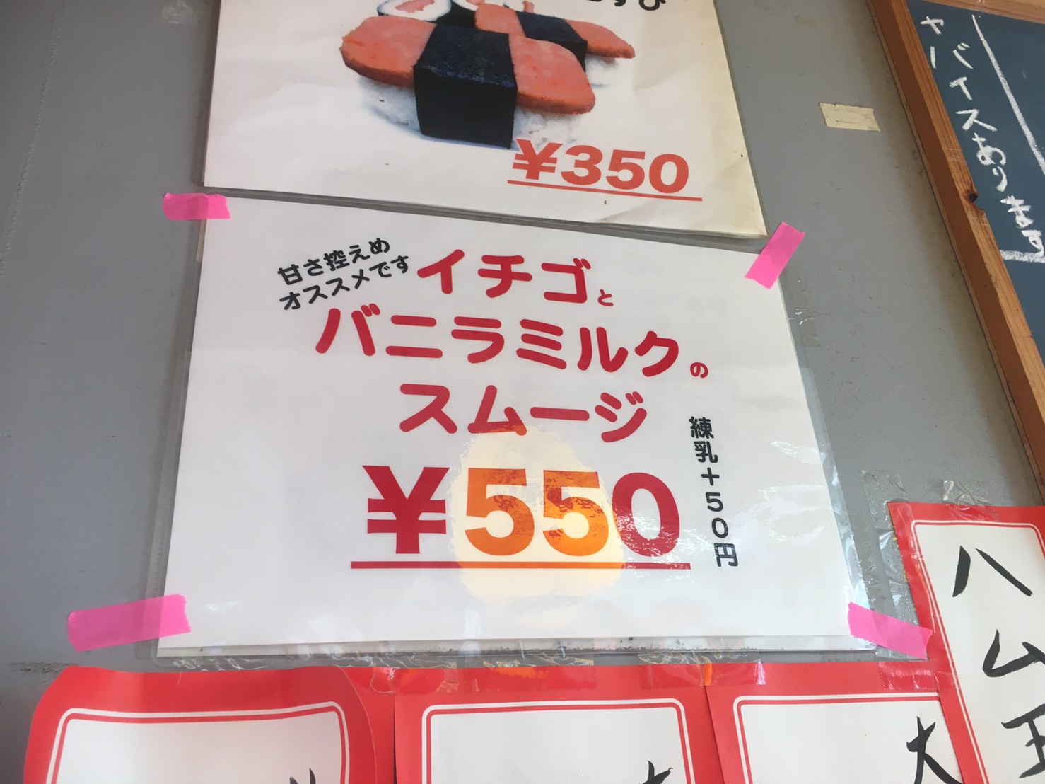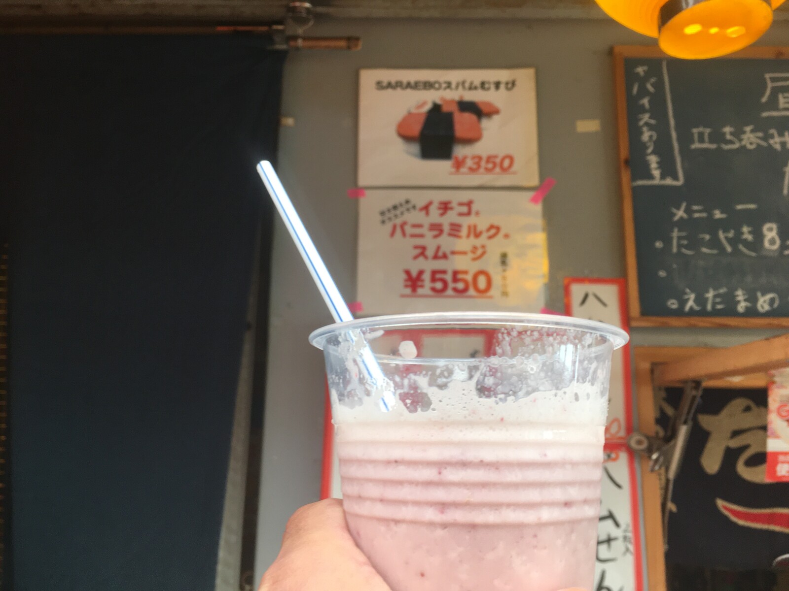 【ぬまつーぐるめ】イチゴとバニラミルクのスムージが登場!中には内緒のアレが。沼津仲見世商店街入口のたこやきサボちゃん。