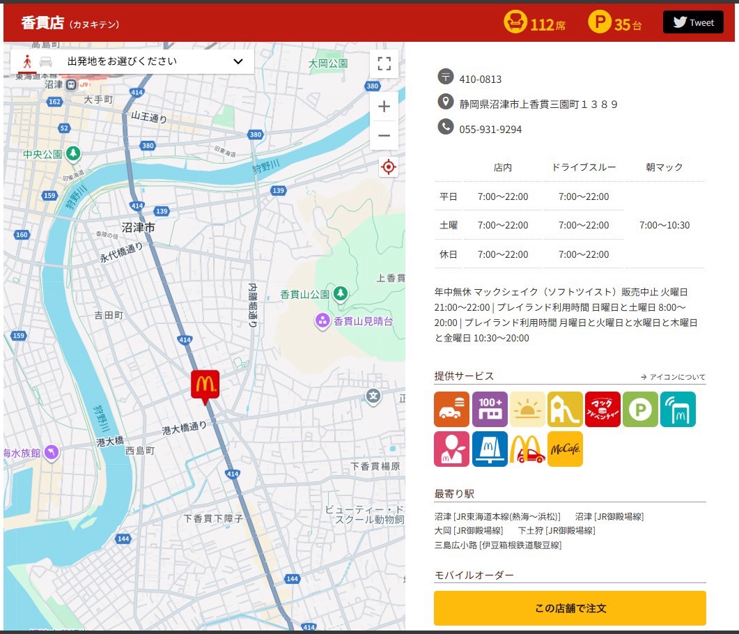 マクドナルド香貫店の営業時間は7:00〜22:00だそう。プレイランドがあるマックってなんかドキドキするよね。(沼津市上香貫)