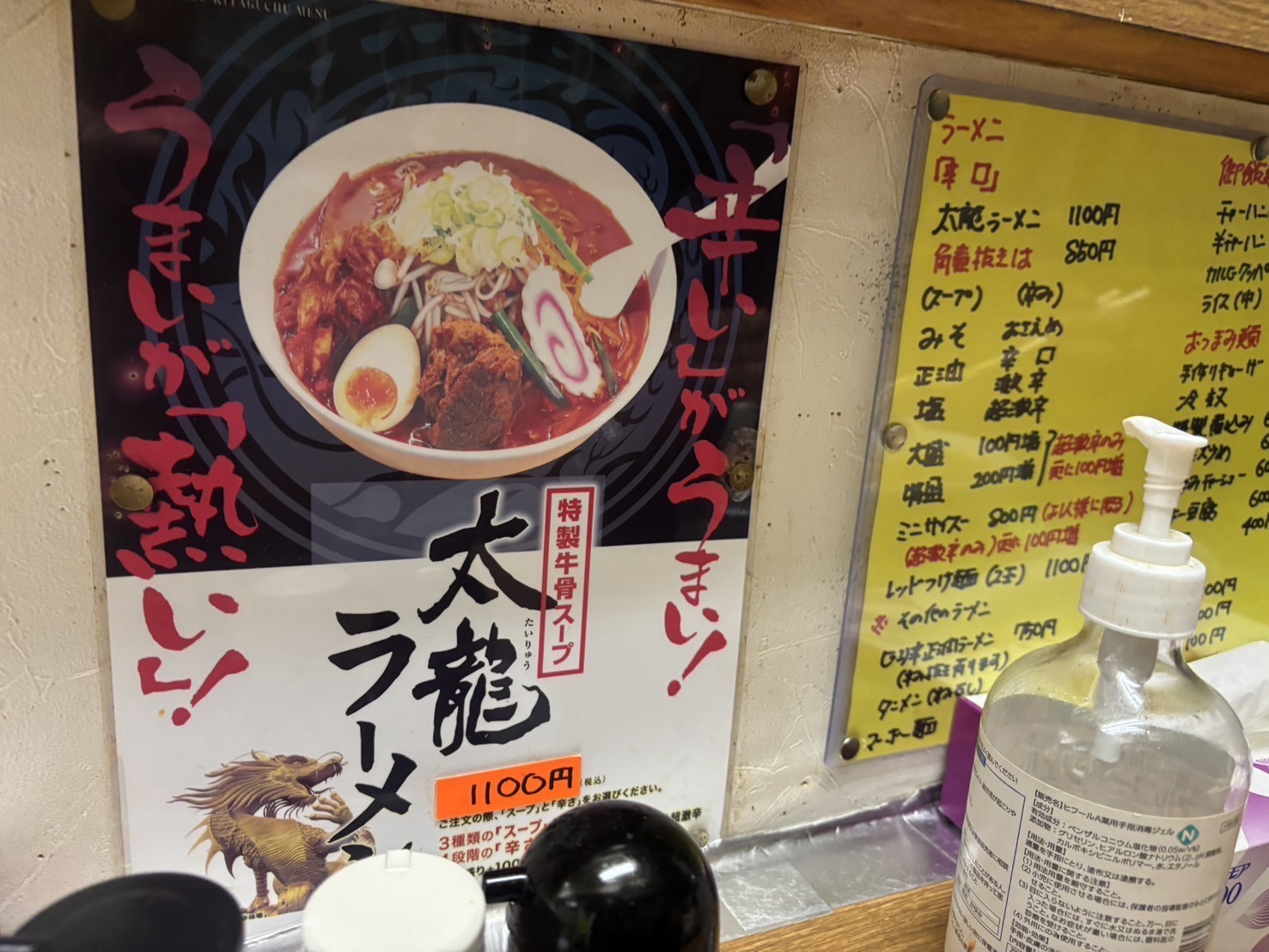 ってか、太龍のコトを「タイロン」って呼んでるヒトもいるけど、メニューのフリガナをみたら「たいりゅう」って書いてあるから、たいりゅうでいいみたい。