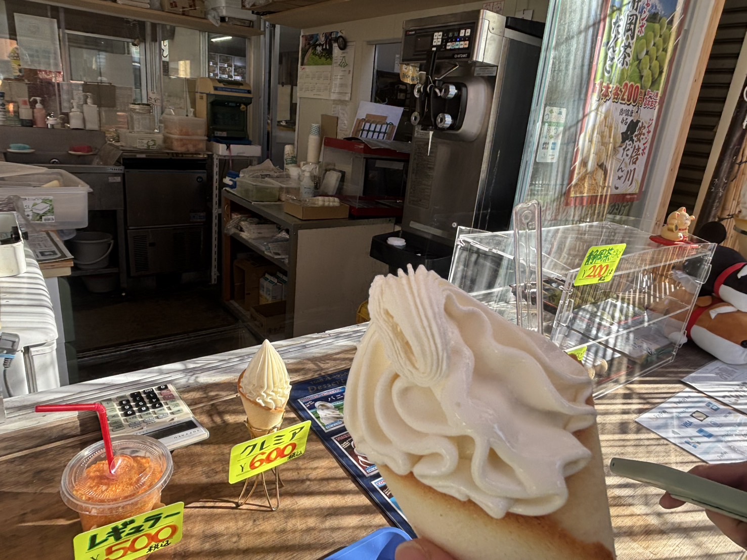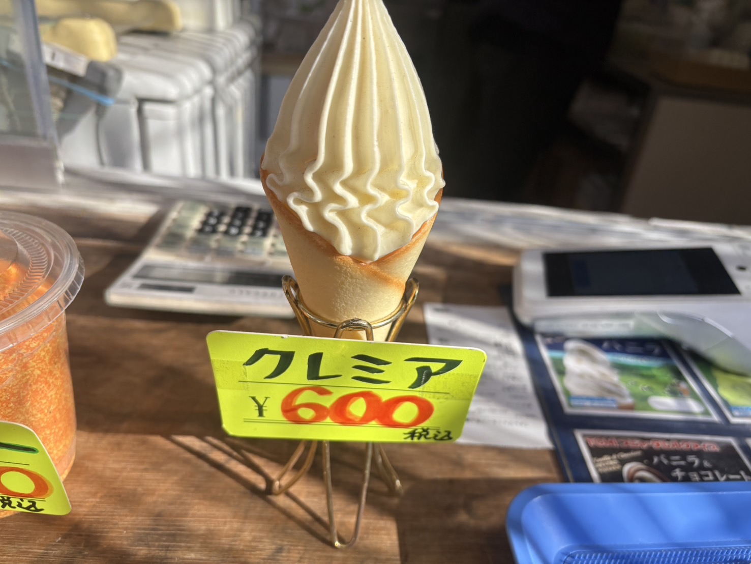 沼津港のクレミア。うまい。やっぱ海鮮食べたあとは、ソフトクリームだよね。(沼津市千本港町)