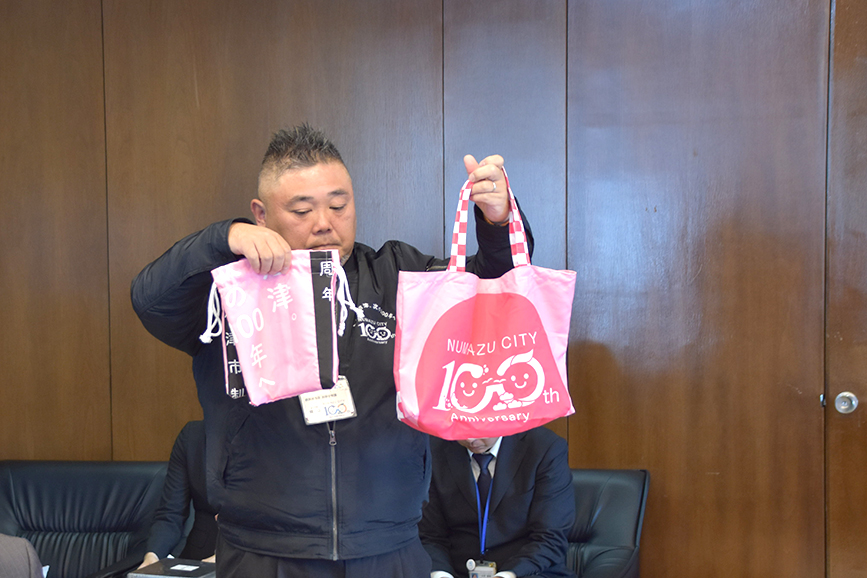 市制100周年はっぴはいろんなところで大活躍でしたから、市長とか燦々ぬまづ大使の藤木由貴さんとか有名な人が袖を通したものもあるかもしれませんね。おそらくこの機会にしか手に入らない激レアな逸品になりそう。購入予定の人は欠かさず申し込みをお願いします!!