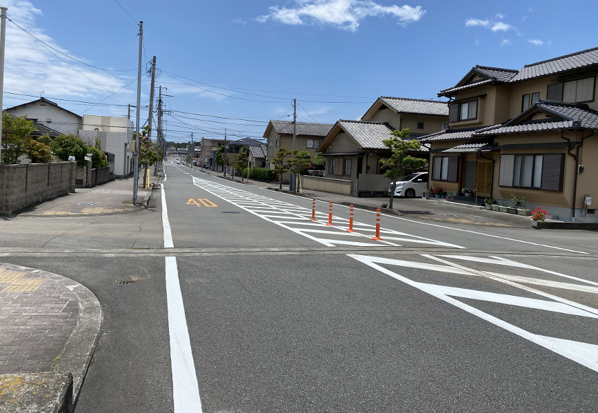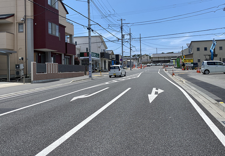 このあたりは小中学生をはじめとしていろんな人が通ります。まっつぐすぎてちょっとスピードが出やすかったりしますが、白線もキレイになったので、道路を走るときは安全運転をお願いします!
