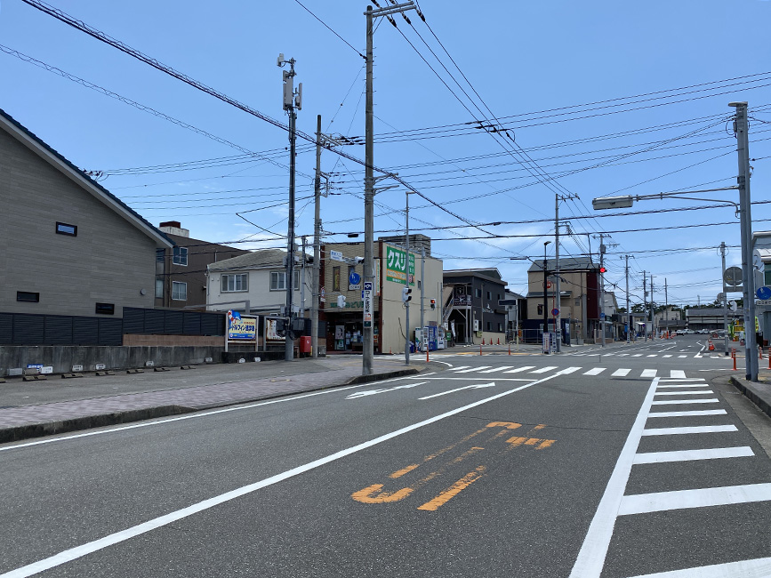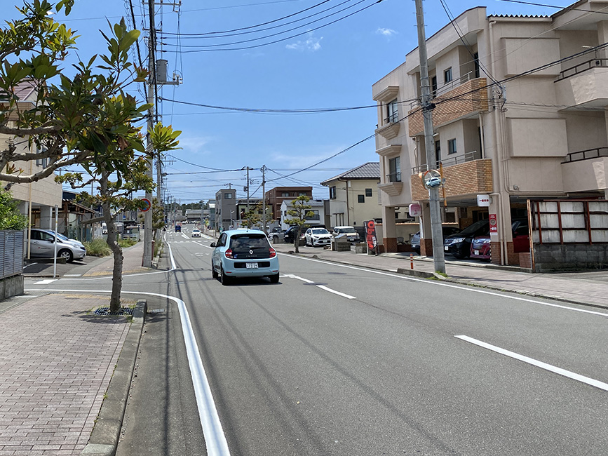 原駅前からまっつぐ。駅から国イチに向かう道の白線がキレイになってる。