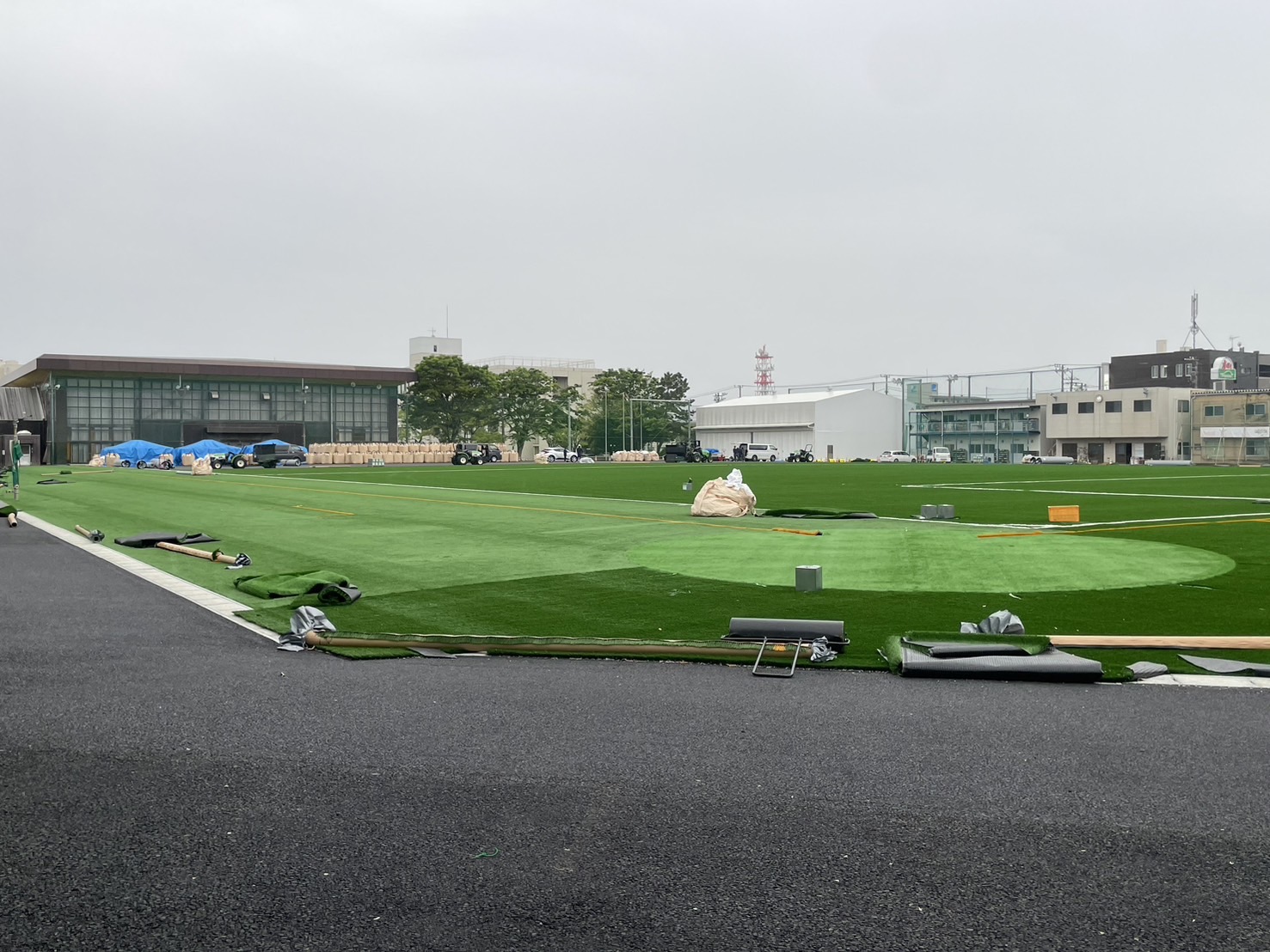 ガクエンのグラウンドでなんか工事してる。僕の時代は沼津学園だったので、今でもガクエンって呼んでる。