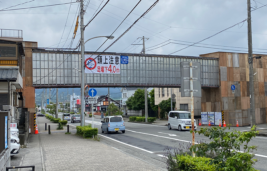 原の歩道橋が工事中!なんだか要塞みたい。制限高は4.0m!