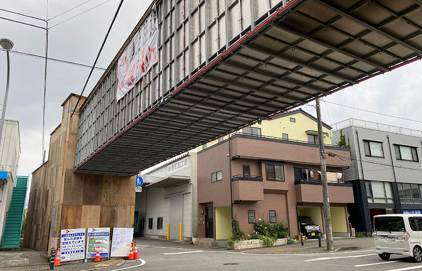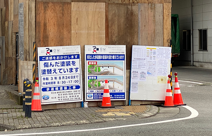興国寺城通り、コクイチから旧東海道に抜ける道の間の歩道橋が工事中です。