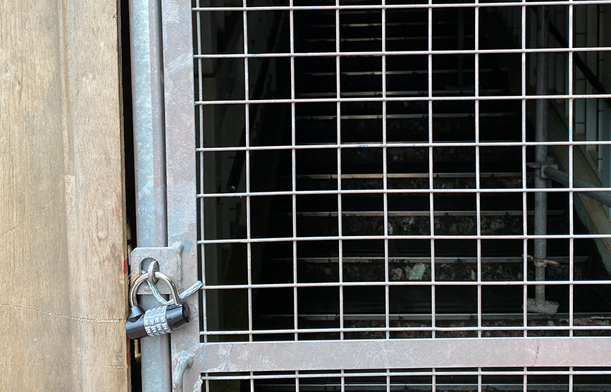 普段登り口として使われているところは南京錠で厳重に施錠されています。