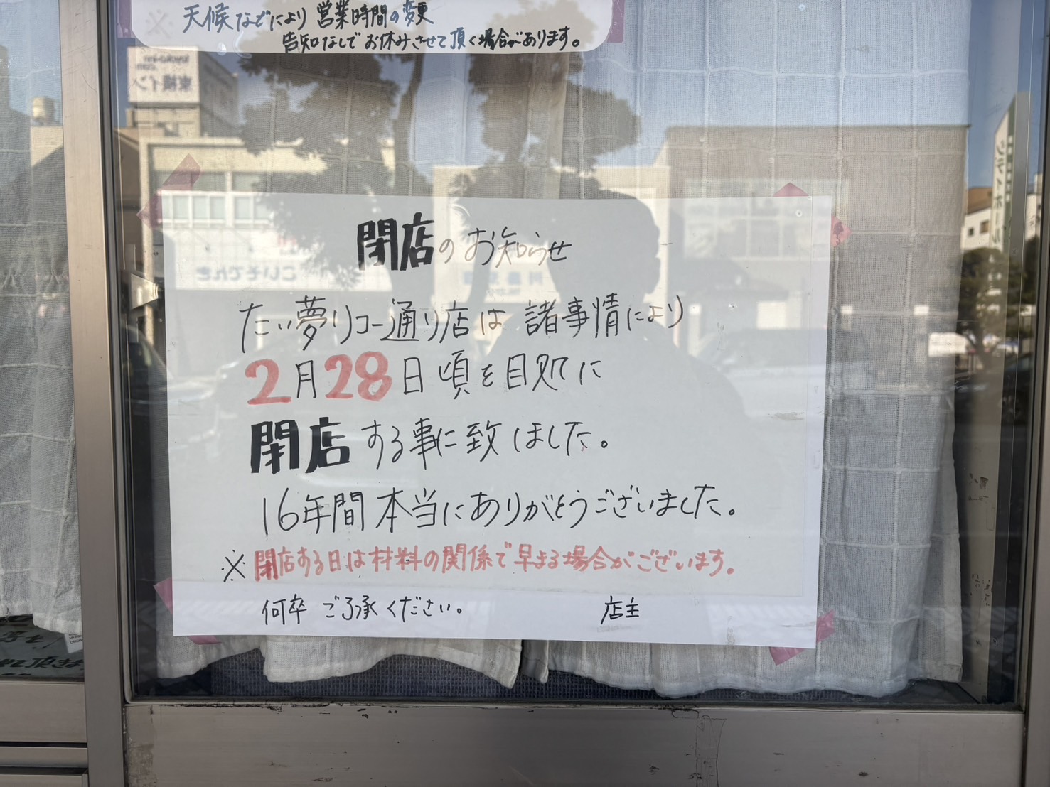 「2月28日頃を目処に閉店する事に致しました。」ということで、