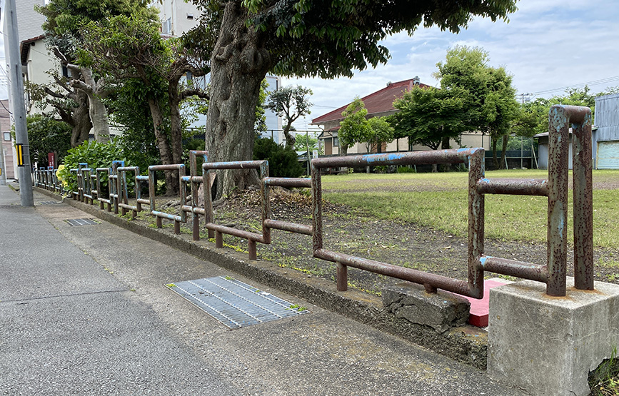 公園の柵がなんかおしゃれ。ただ、ボールはすり抜けそうなのでちょっとしたボールあそびをするときは十分ご注意を。