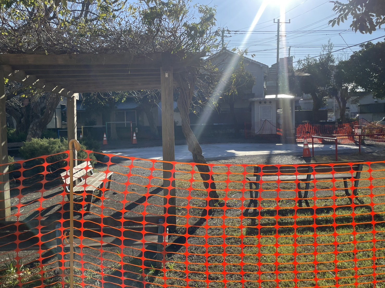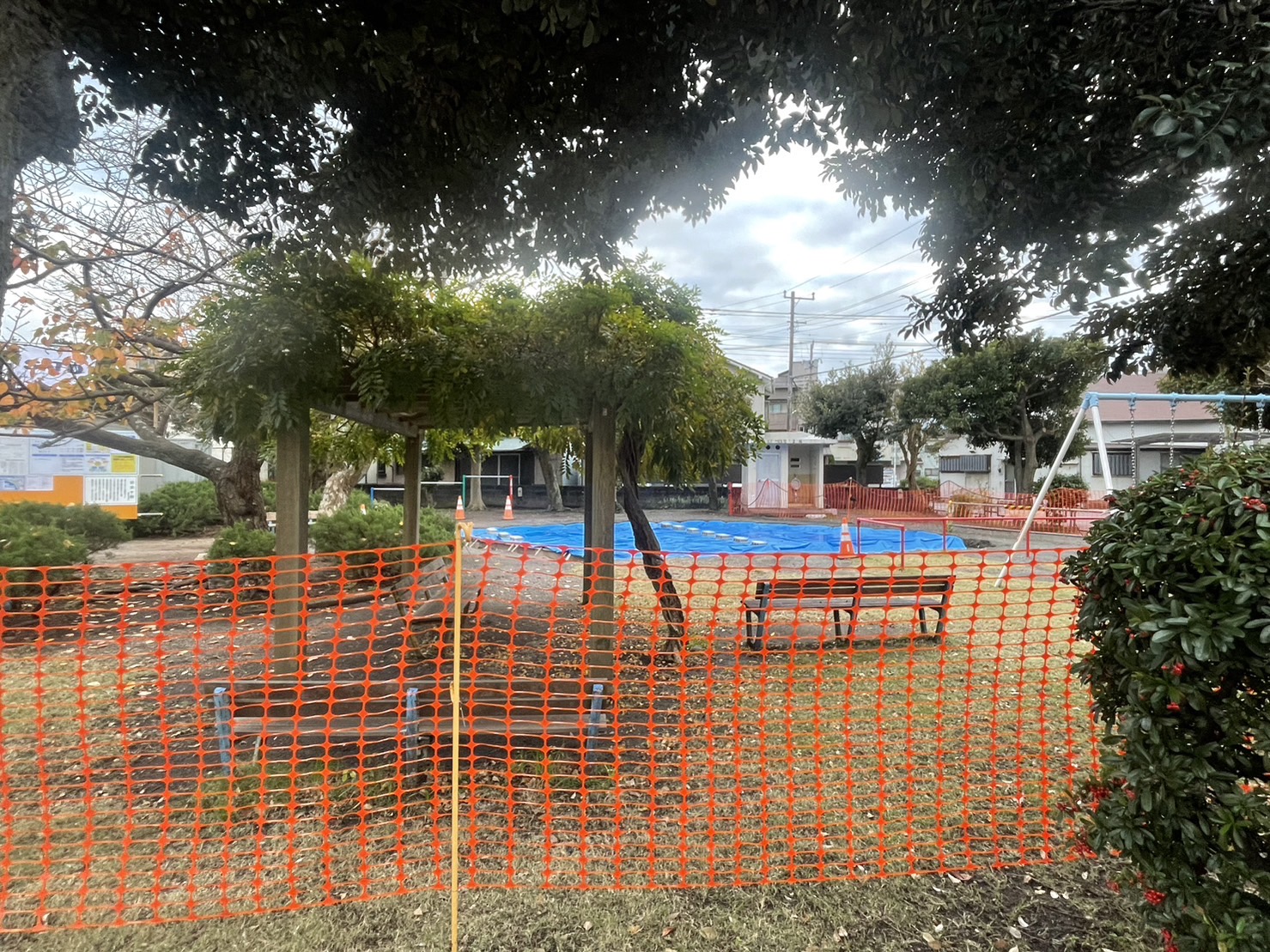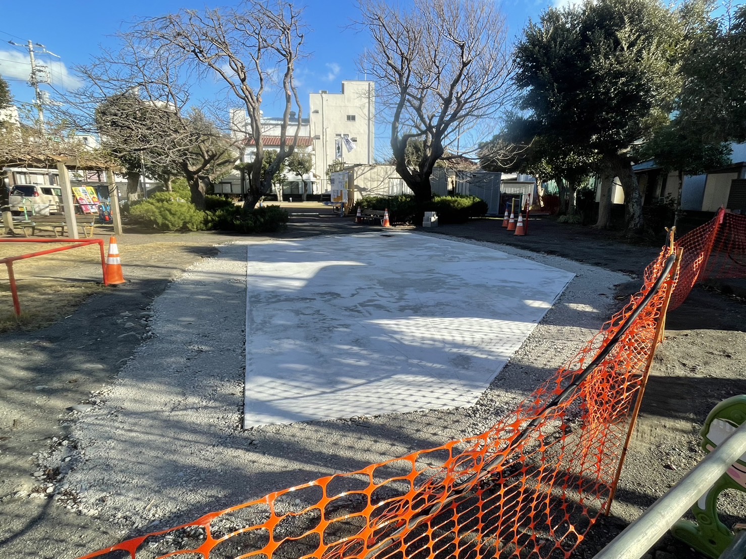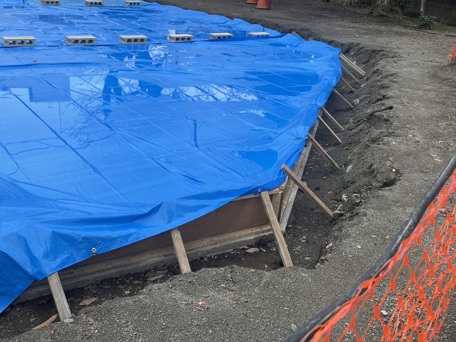 取り壊されてから新しくブルーシートがかかってたタコ公園。さらに工事が進んでるっぽい。(沼津市市道町)