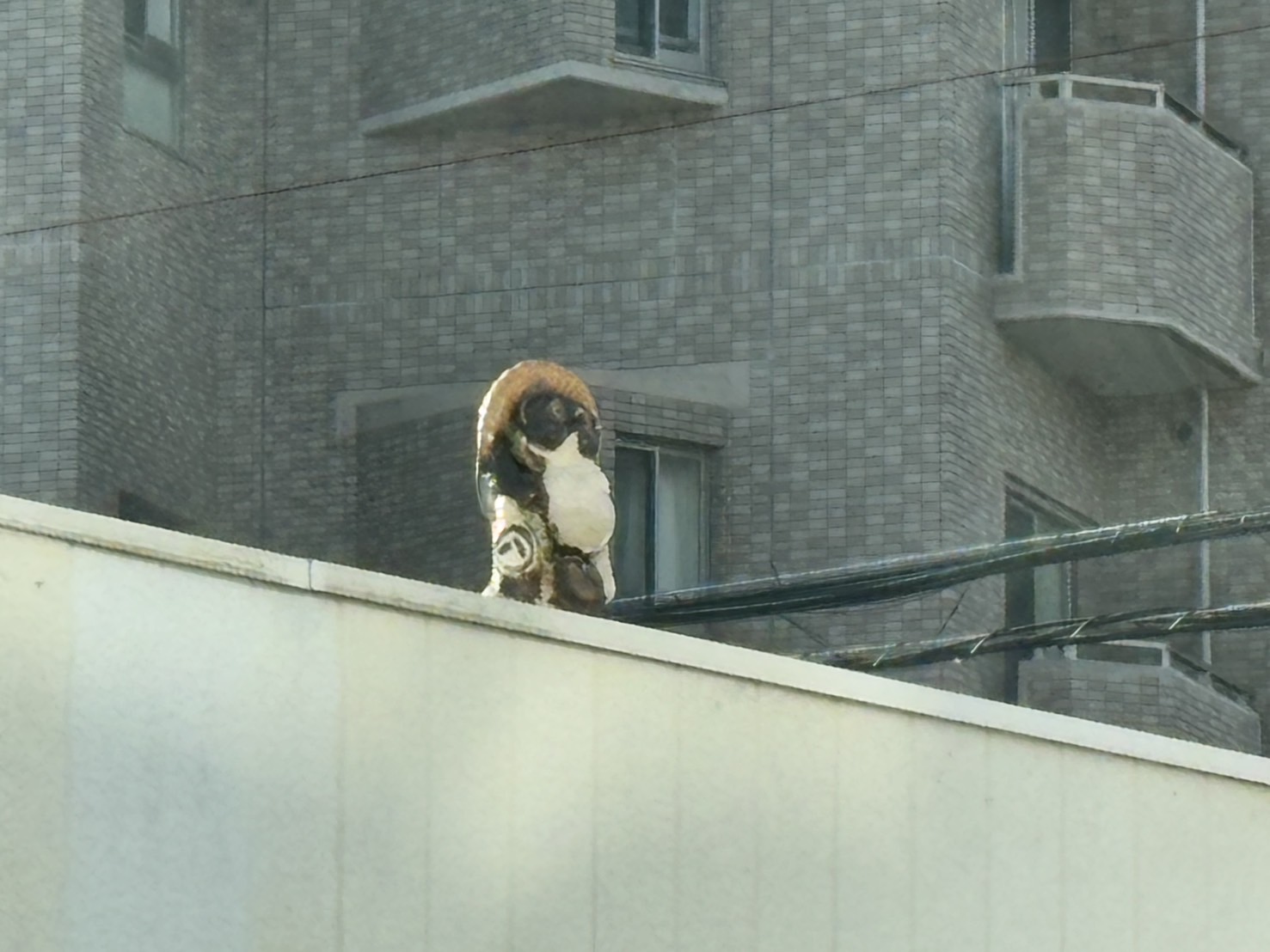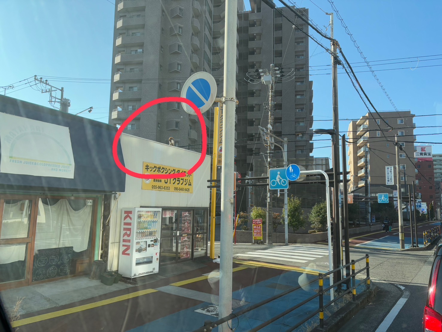 JTクラブジムの屋根に、たぬきいる。(沼津市三芳町)