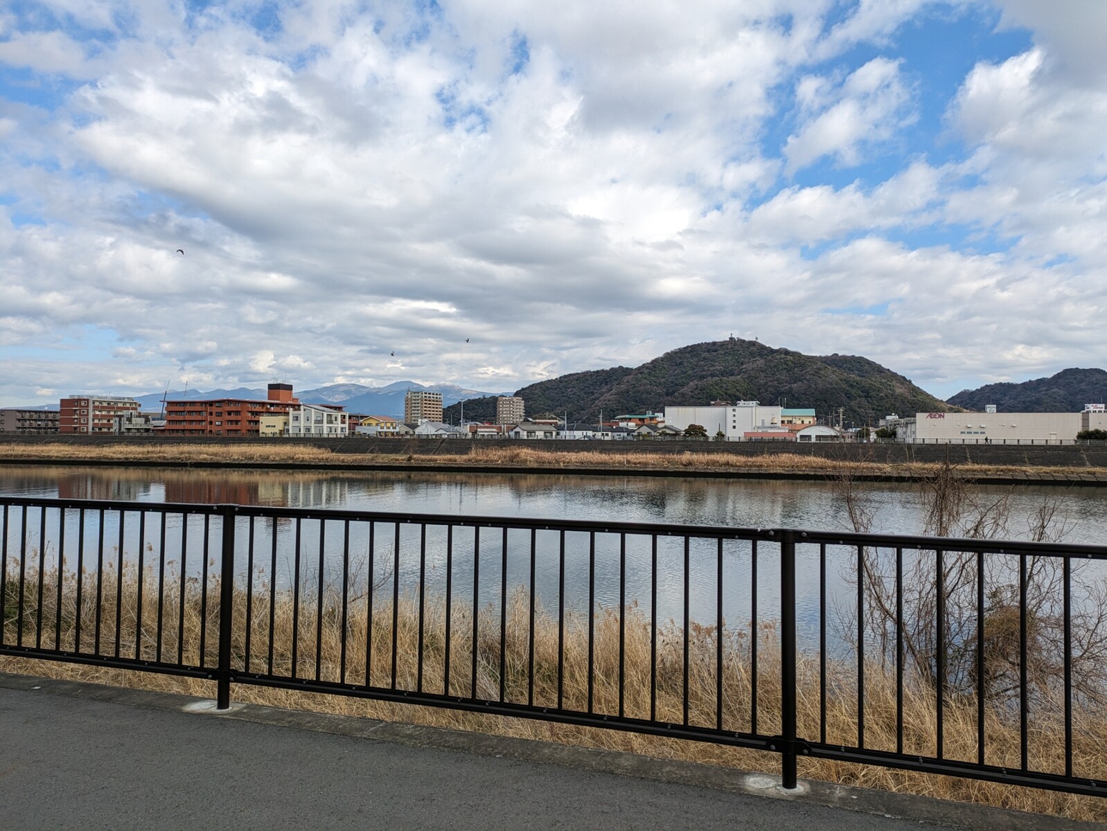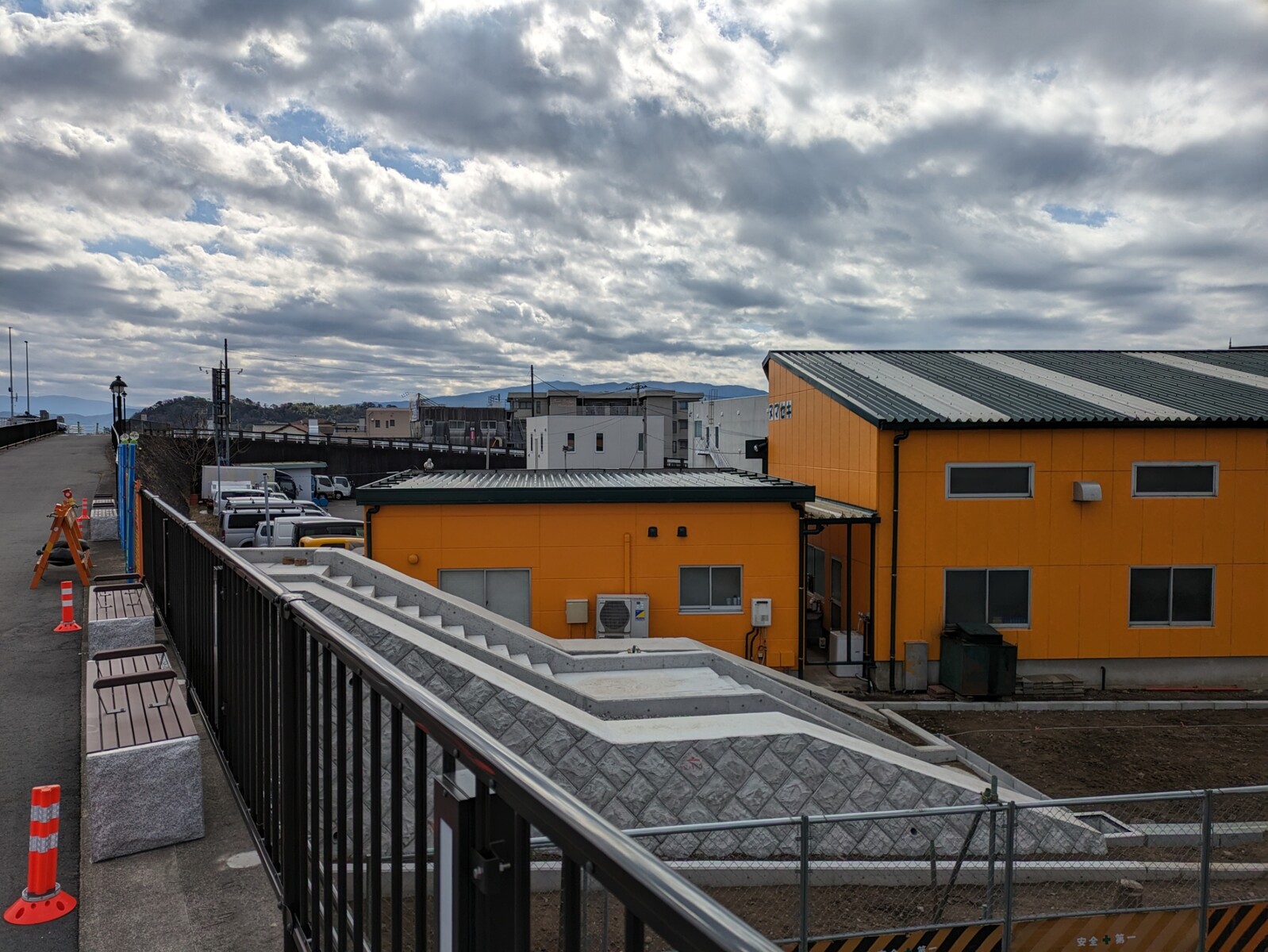 整備された広場の階段を上がったら、目の前は狩野川だし、その向こう側には香貫山が見えて、めちゃくちゃ絶景の階段になること間違いなしです。