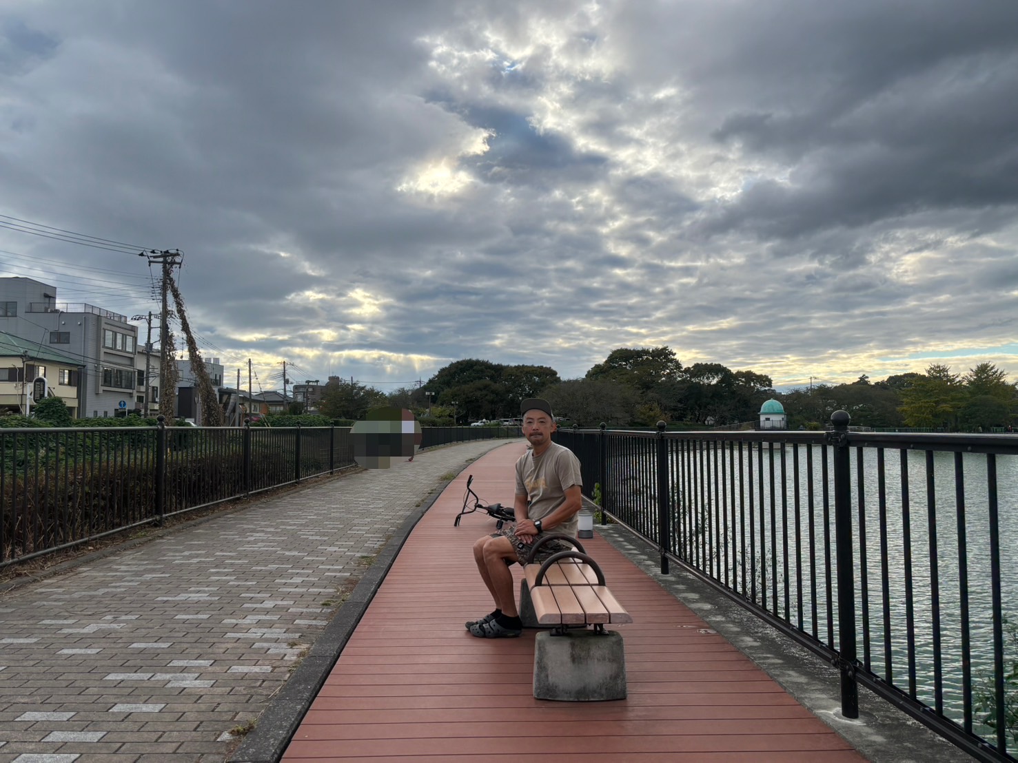 【座れるところ】門池の南側に、3人座れるベンチを発見。ことし7月の田子重ぶりに座ってみた。(沼津市岡一色)