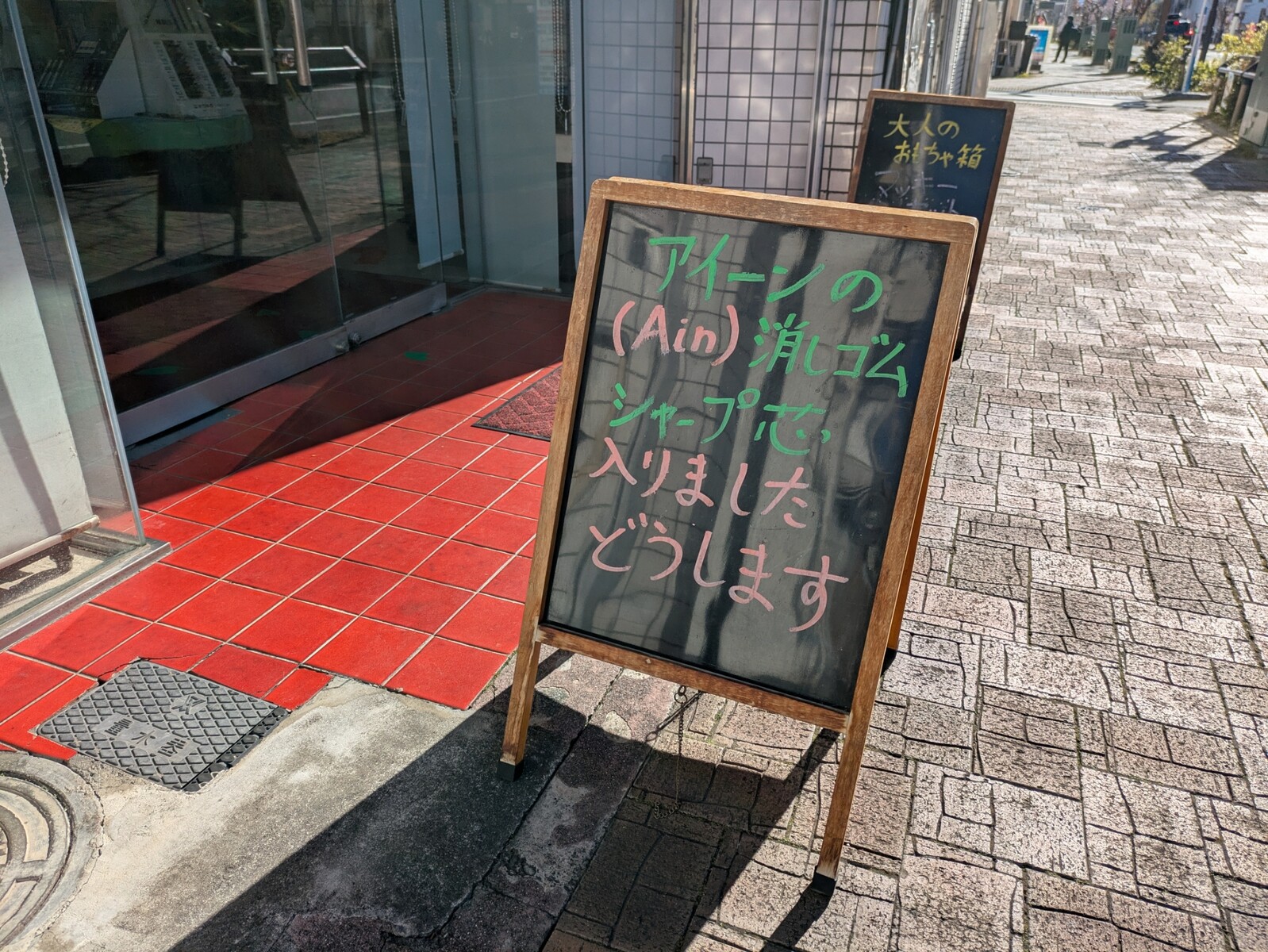 まだ、しんちゃんらしき存在と目が合っていないけれど、この看板と目があってしまった瞬間からもう、さくらい文具店さんに心を鷲掴みにされています。