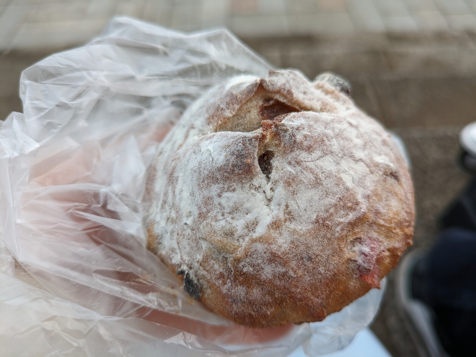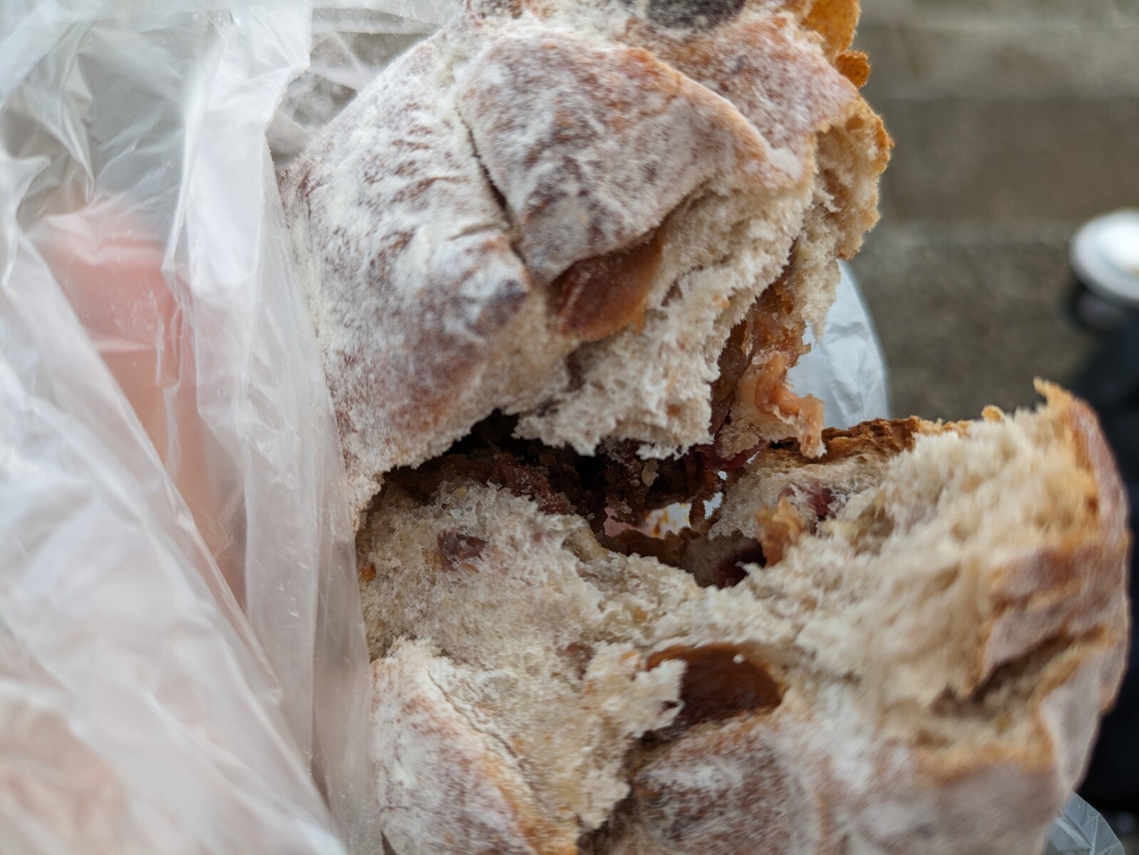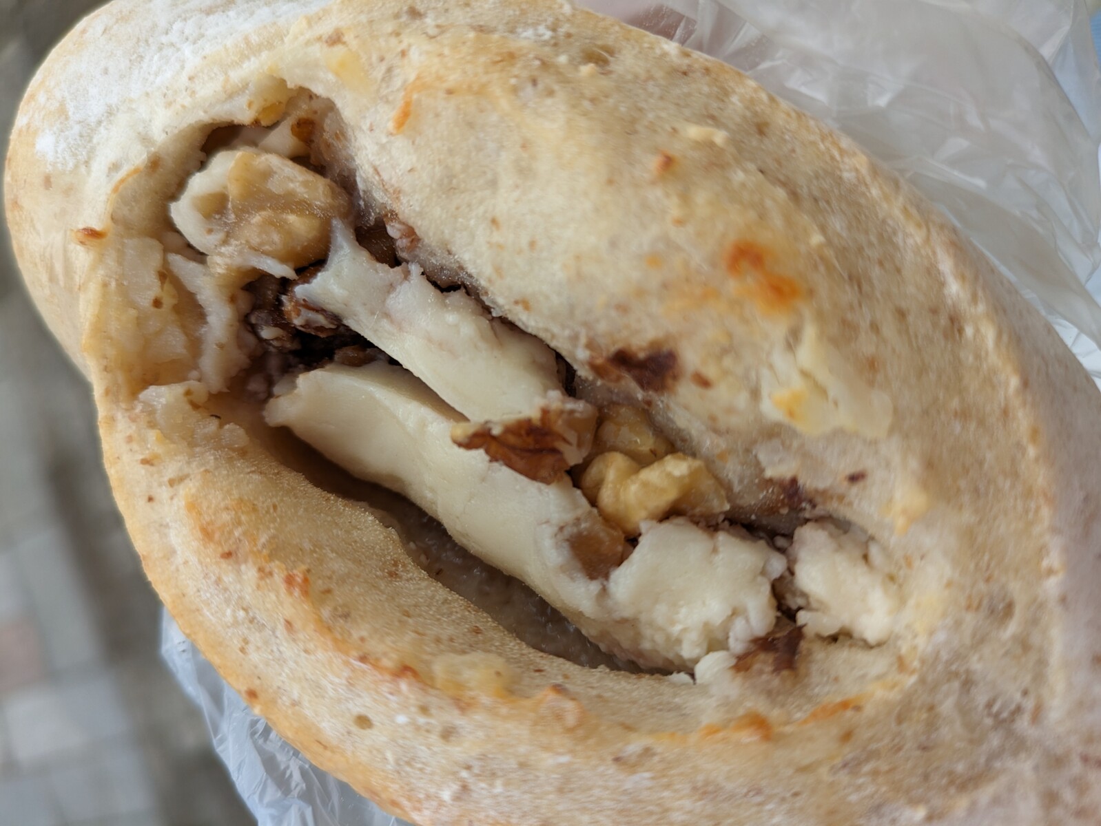 これは、クリームチーズとイチジクとクルミが入ったもちもちのパン。この組み合わせの食べ物が美味しくないはずがないです。