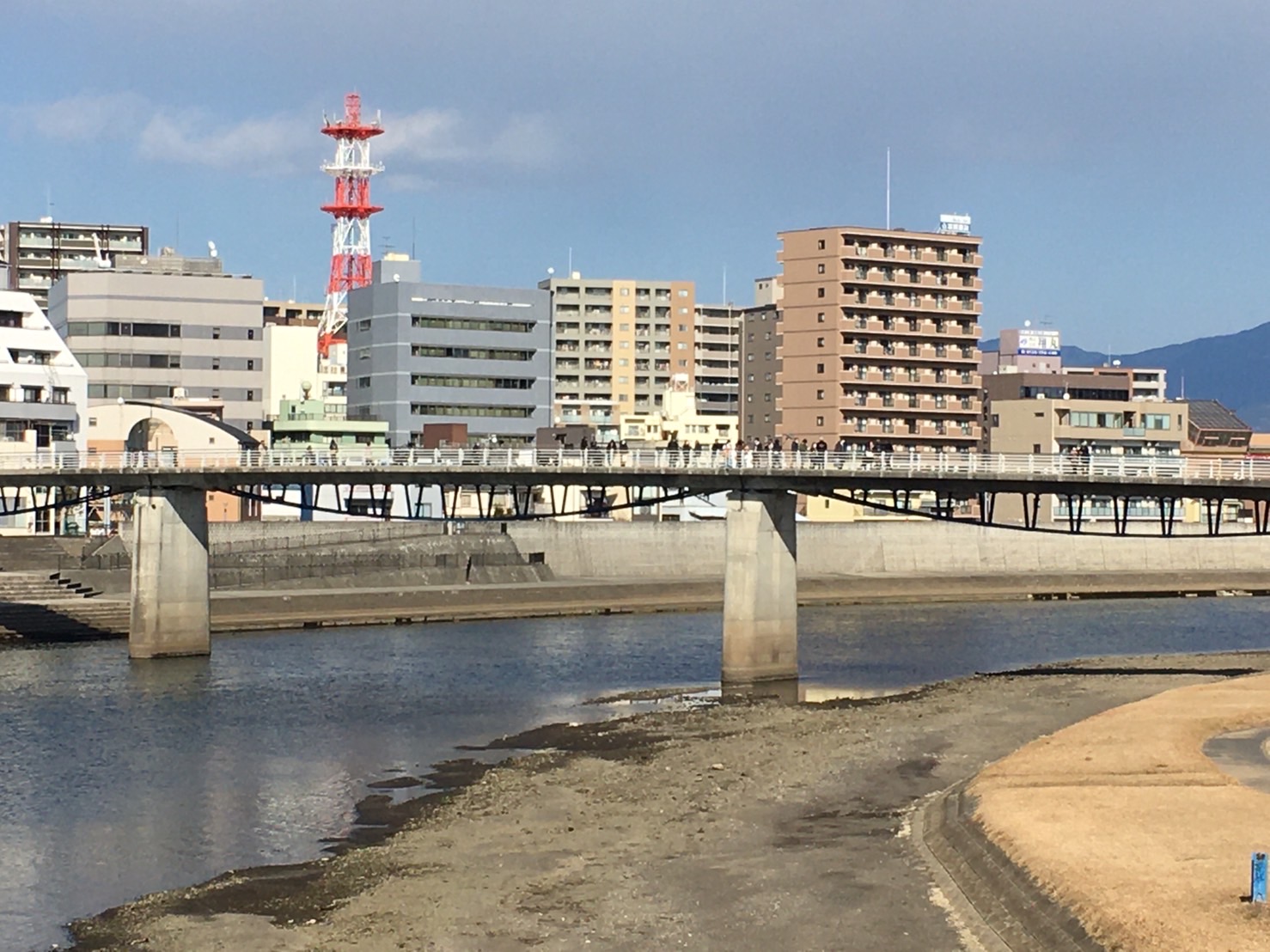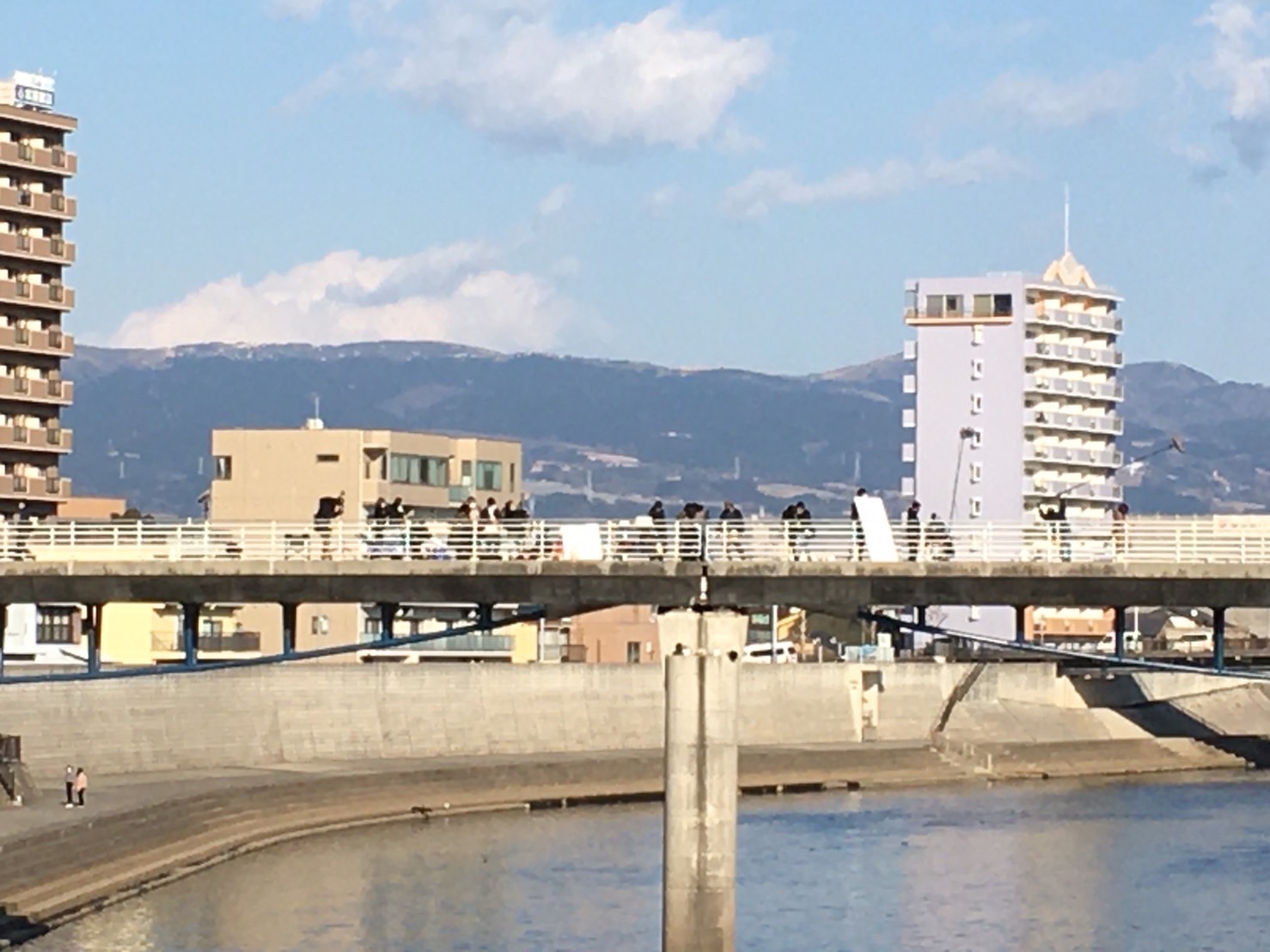 あゆみ橋でなんか撮影してる。