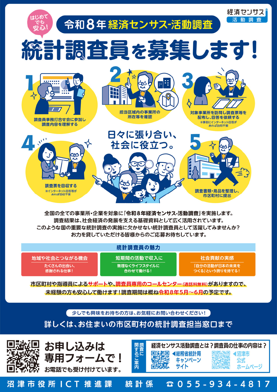 5年に1回のビッグ調査が沼津でも。会社とお店を一斉チェックするやつ。経済センサスの調査員ボシュウしてる。