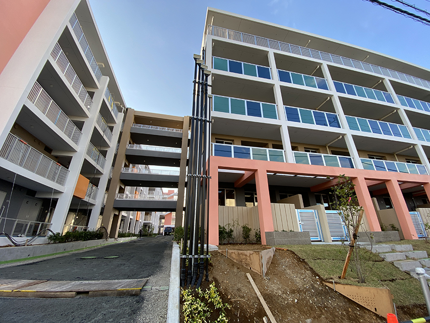 県営住宅原団地の新棟(第1工区)が、いよいよ完成間近っぽい!県営原団地は、昭和51〜54年築の既存棟(9棟・310戸)を解体し、新しい建物(2棟・250戸)に建て替える計画がばっちり進行中。
