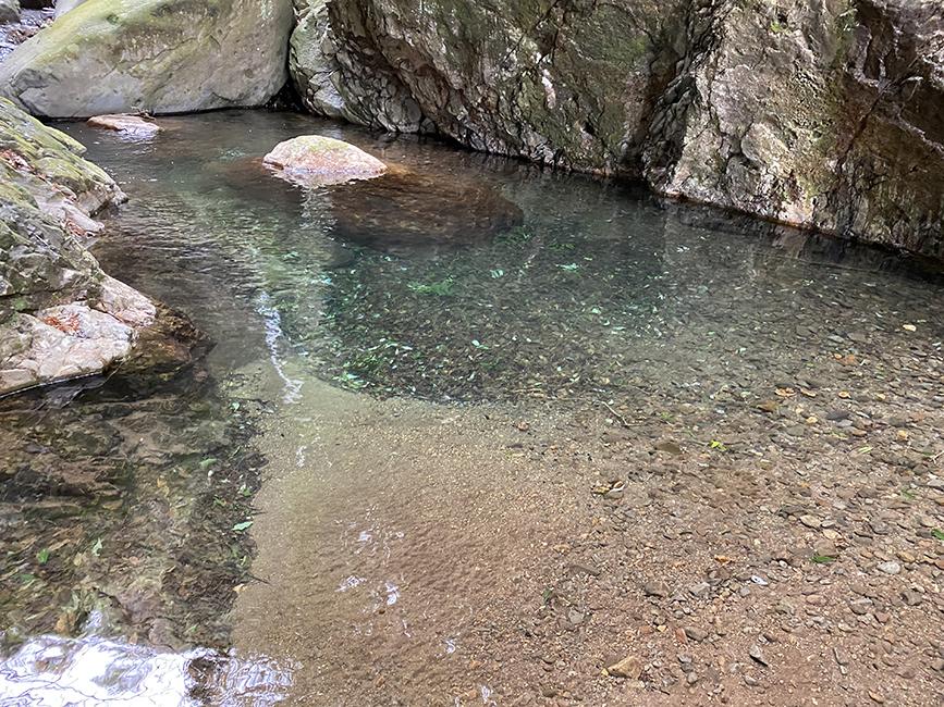 滝ツボは透明度バツグン。