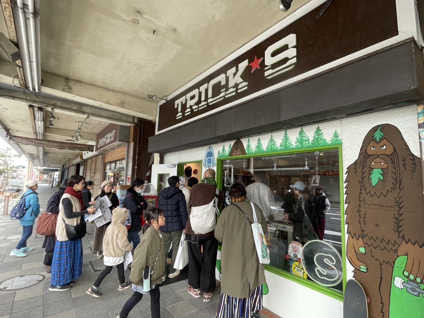 トリックスのシャッターや外壁にも、かっこいいアーティストの作品が描かれていてここでもなんだかワクワクする。お店の方もやさしいので、シャッターや壁のコトや、スケボーのコトが気になる人は、色々聞いてみると教えてくれるよ。