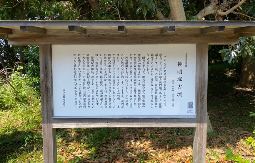 実は沼津には14基もの古墳があります。今回はそのうちのひとつ、神明塚古墳へ行ってきたのでご紹介します。神明塚古墳は前方後円墳という種類に分類される古墳です。「前方後円墳」、教科書で一度は聞いたことがある名前ですよね。