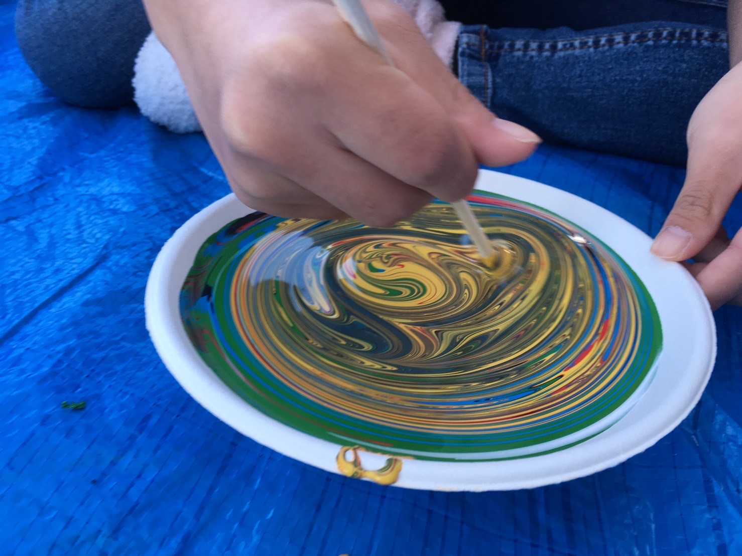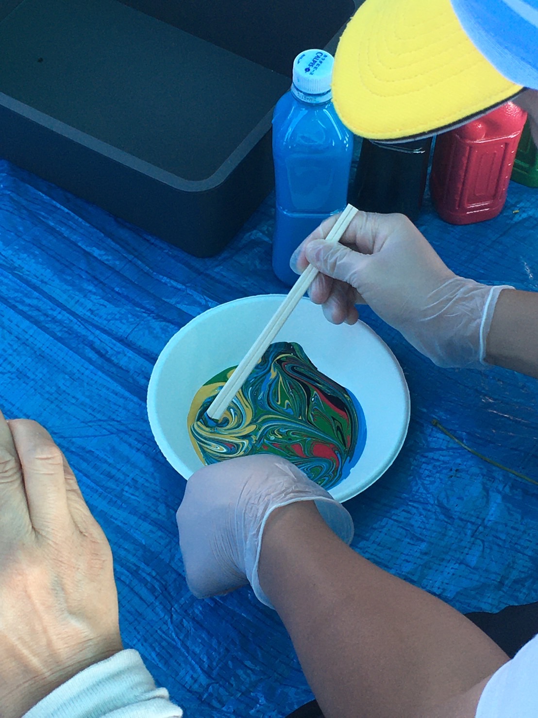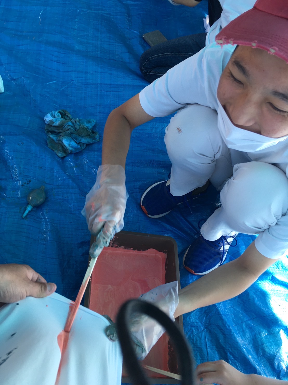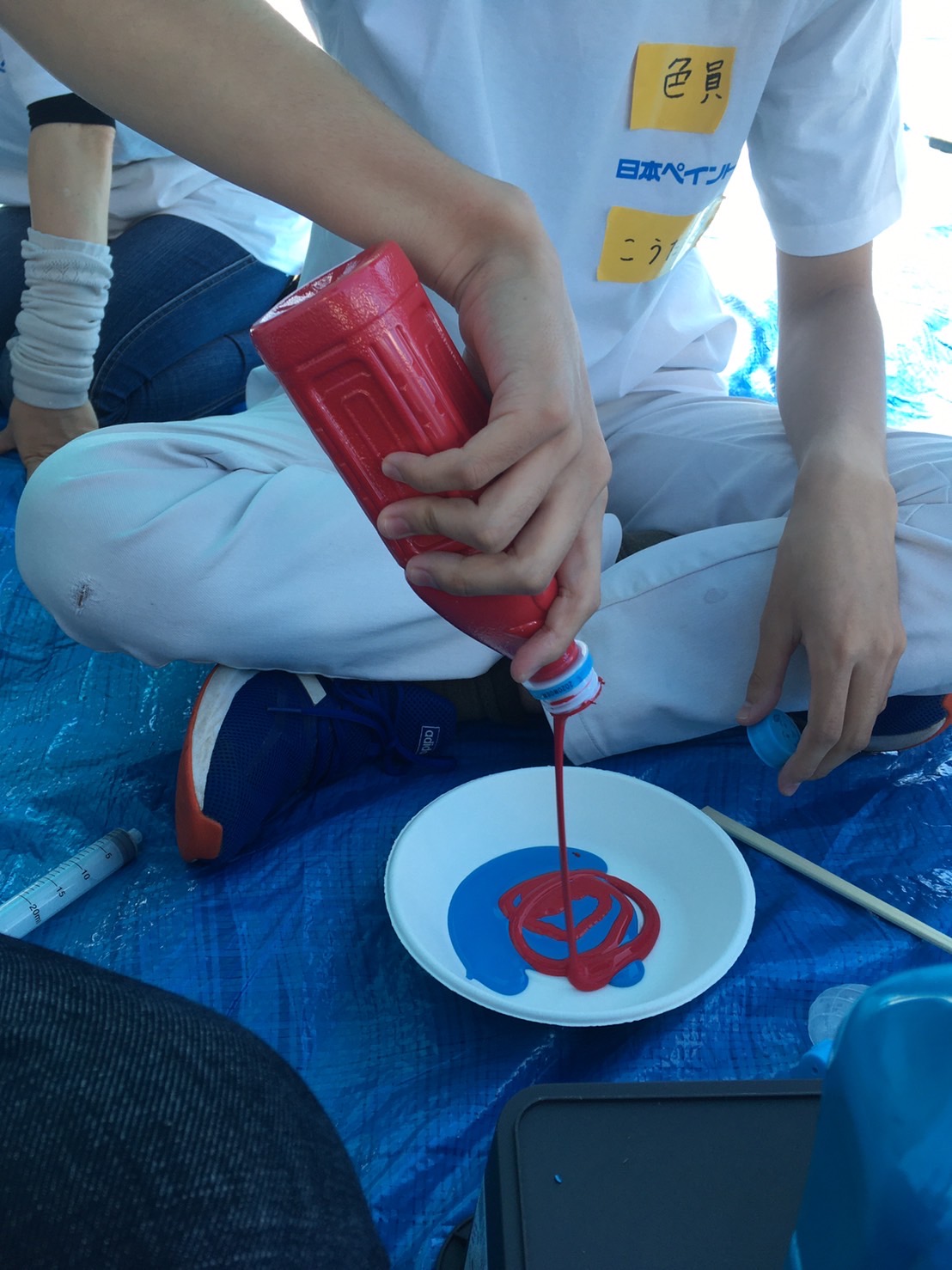 水色と赤!色が混ざる前。ワクワクする。