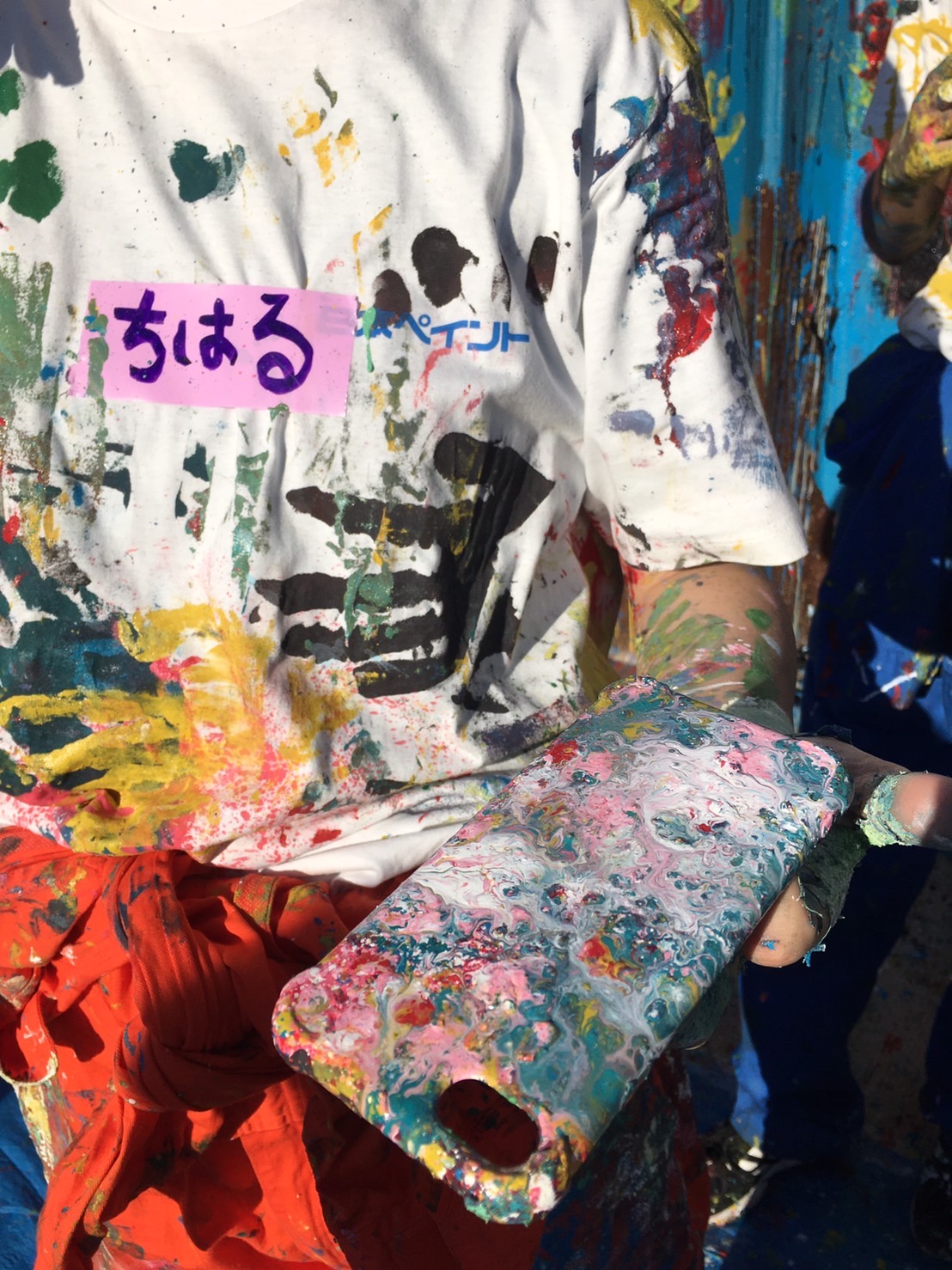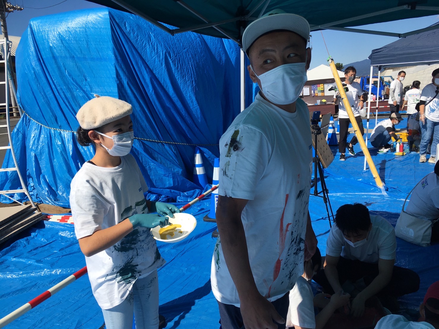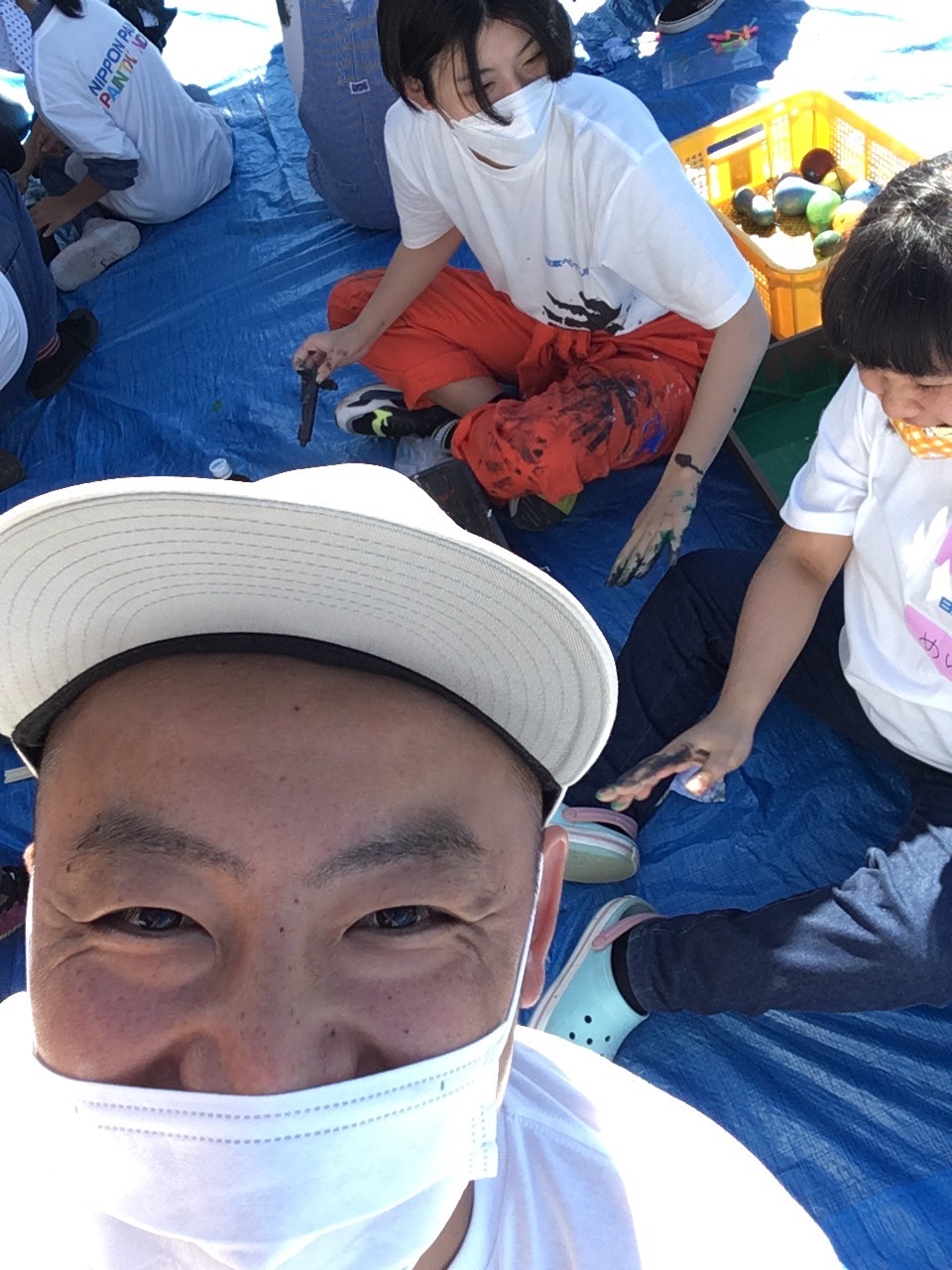 SHOGENさん(アフリカンペイントアーティスト)も準備OK。日本ペイントスペシャルアンバサダーとして朝から色づくり、ペンキ風船までみんなのサポートをしてくれていた。