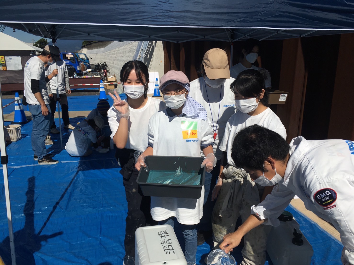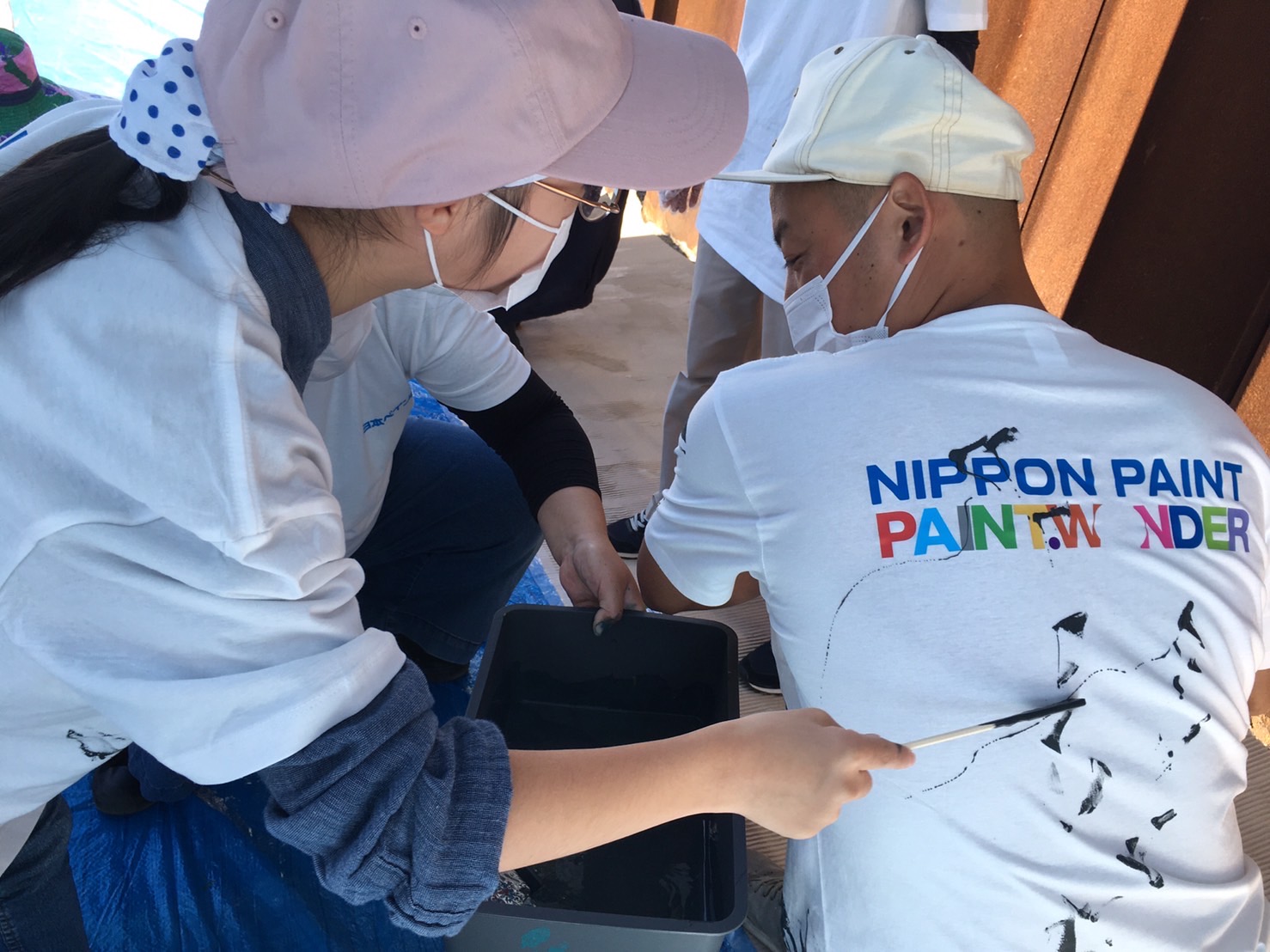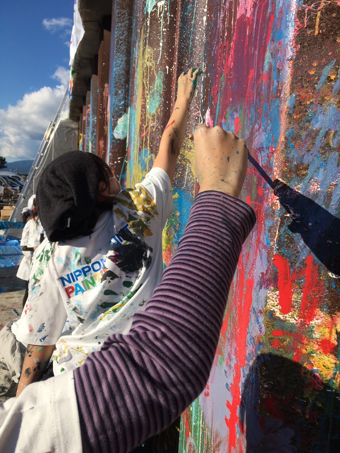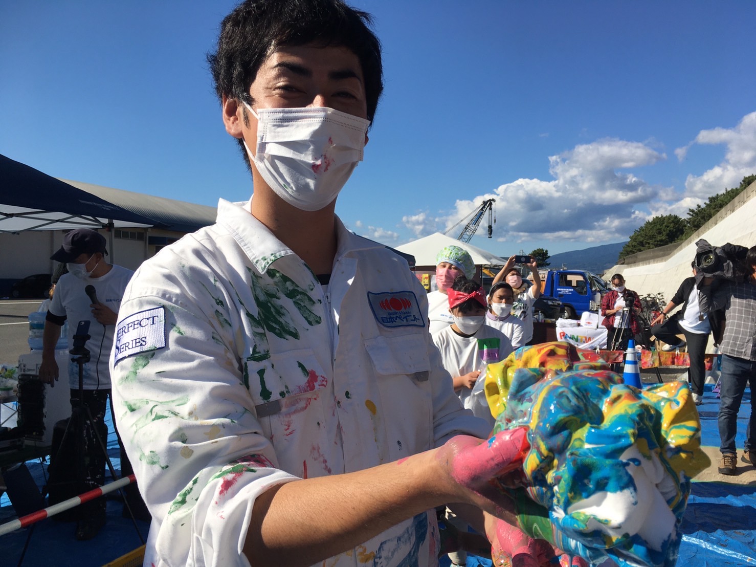 SHOGENさん(アフリカンペイントアーティスト)も準備OK。日本ペイントスペシャルアンバサダーとして朝から色づくり、ペンキ風船までみんなのサポートをしてくれていた。