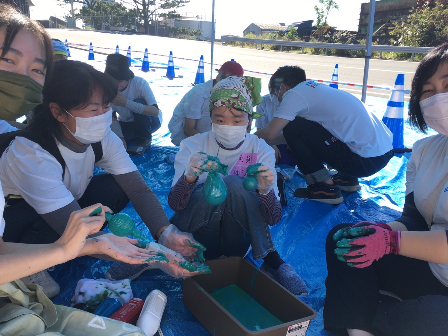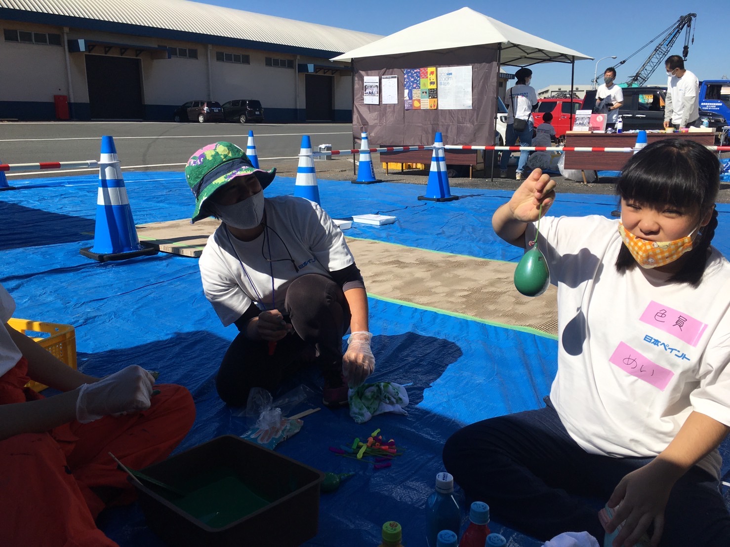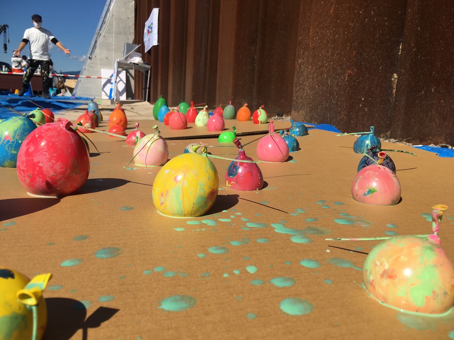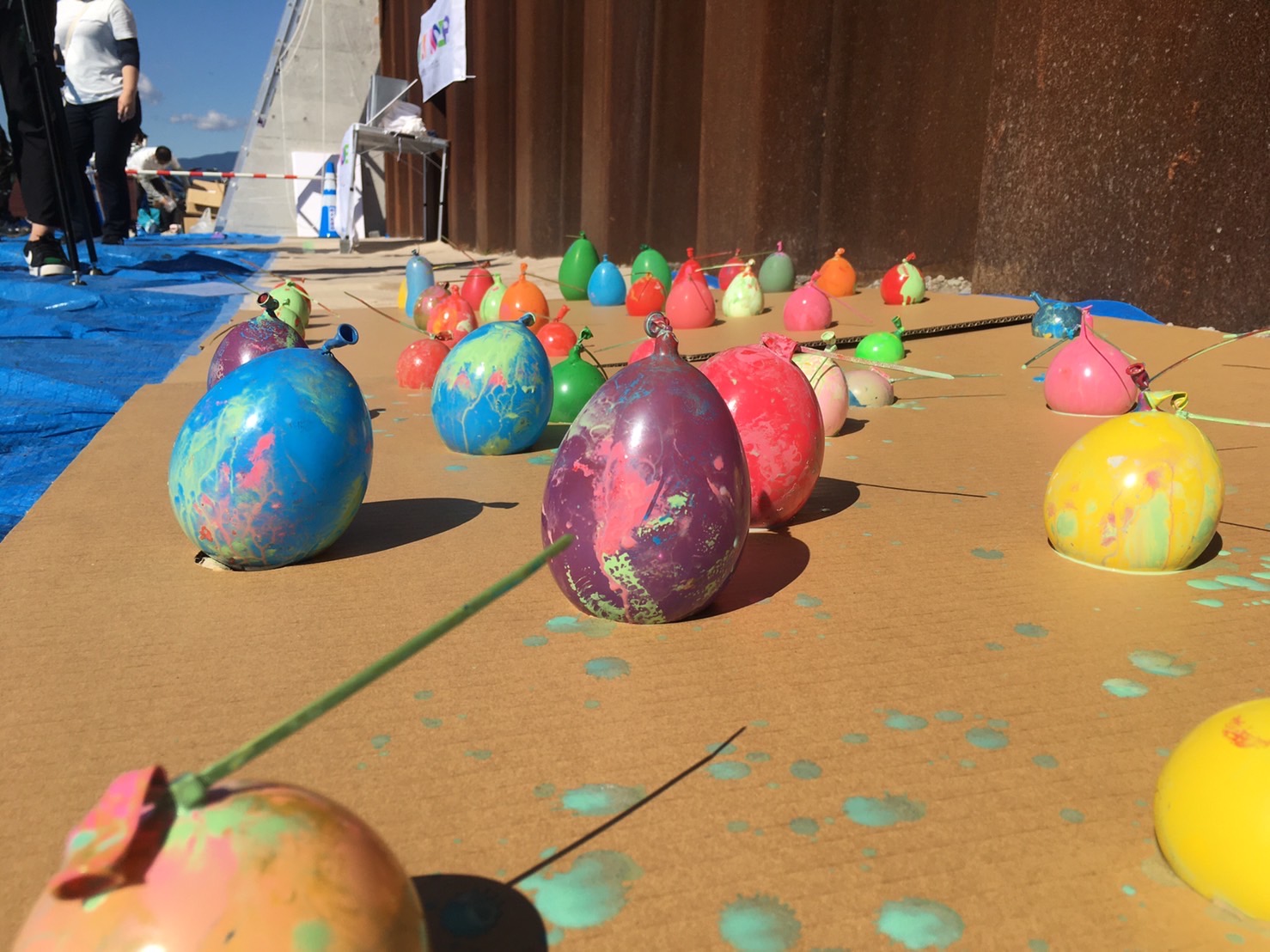 午前中にペンキ風船作りは完了。