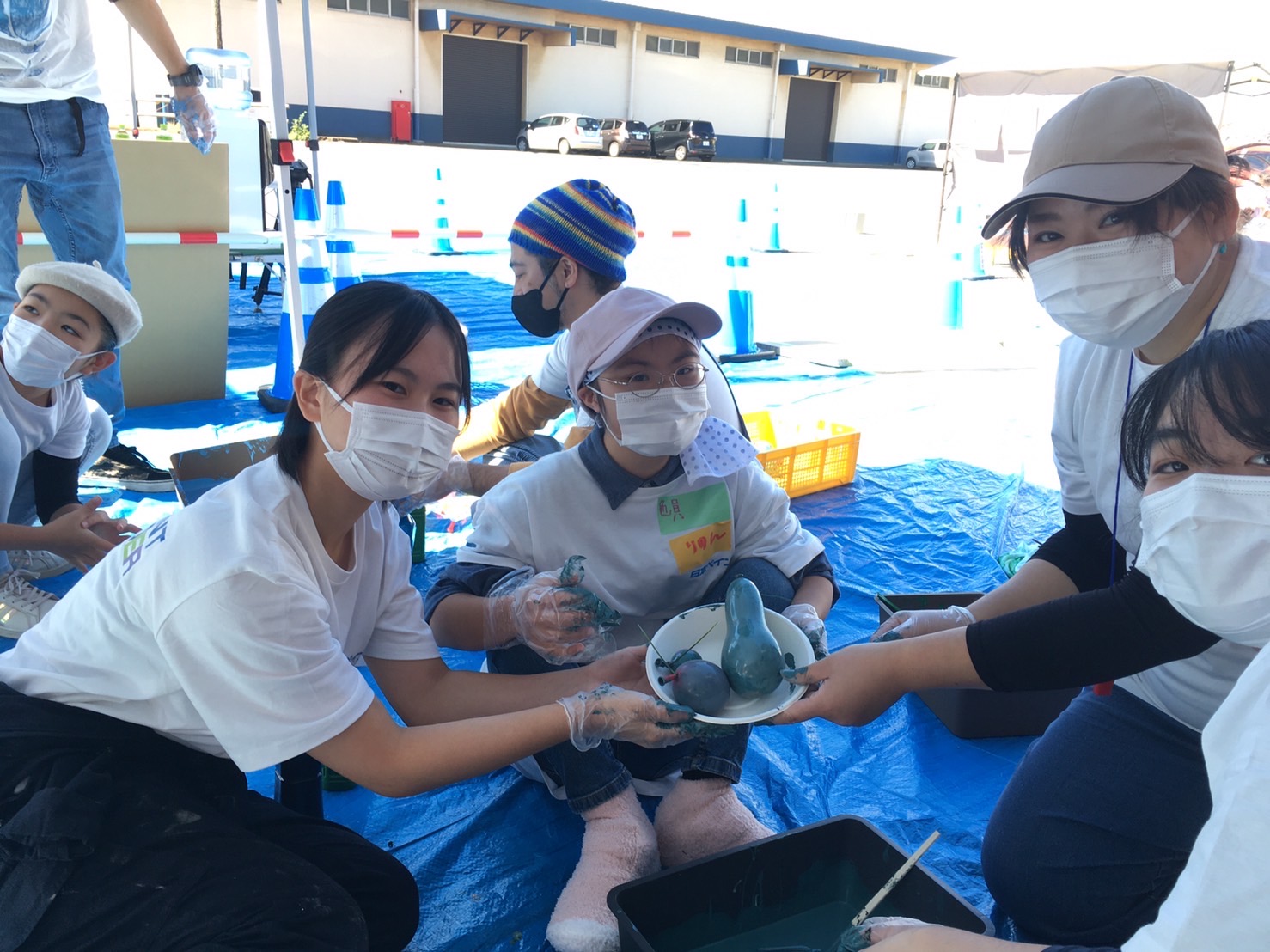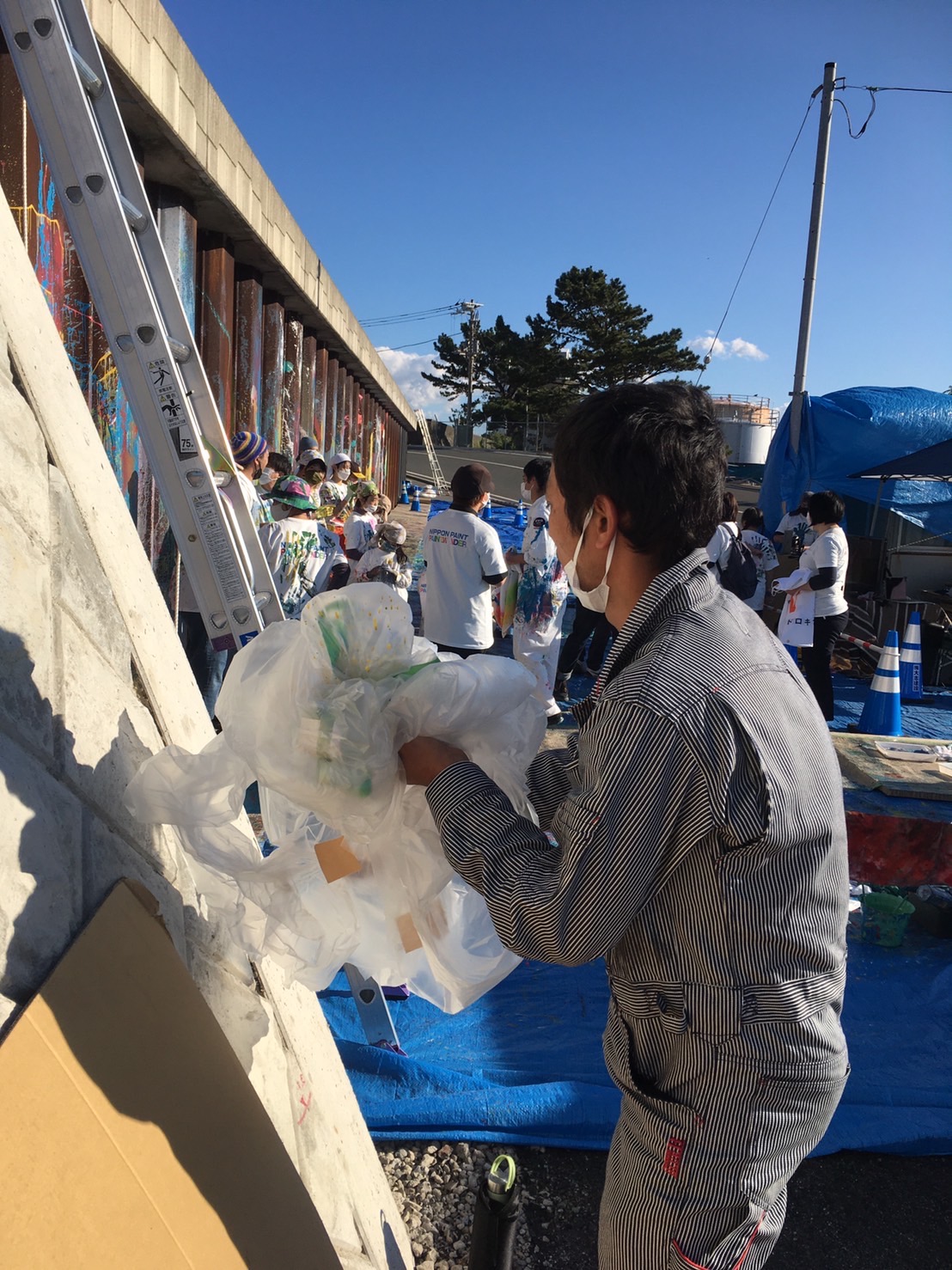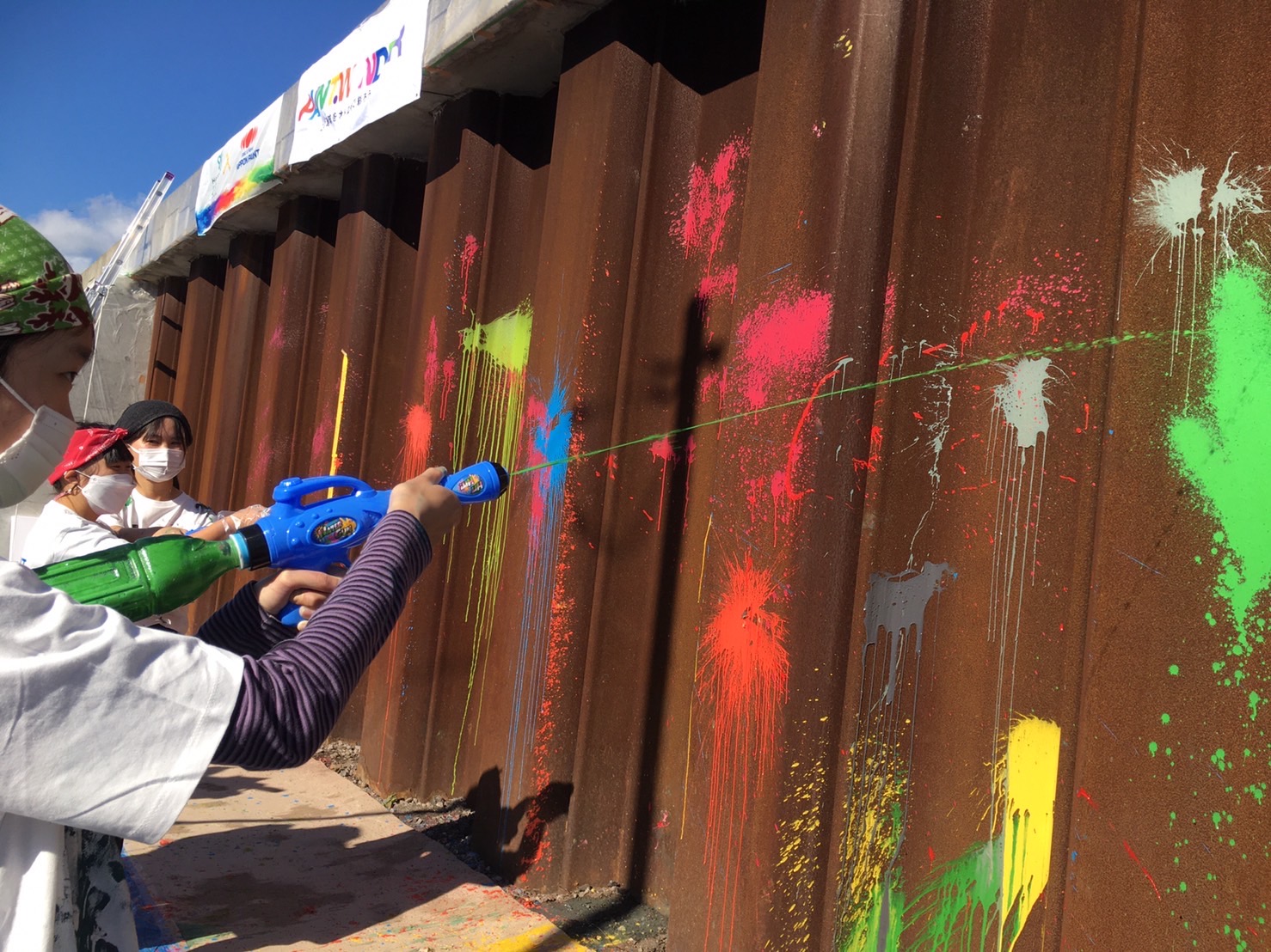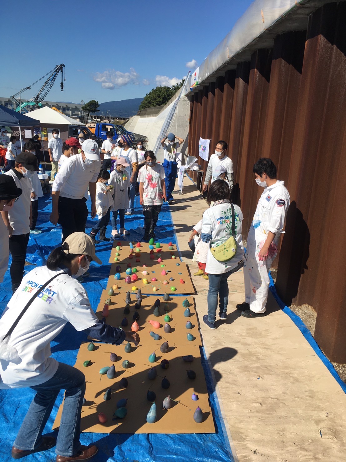 午前中にペンキ風船作りは完了。
