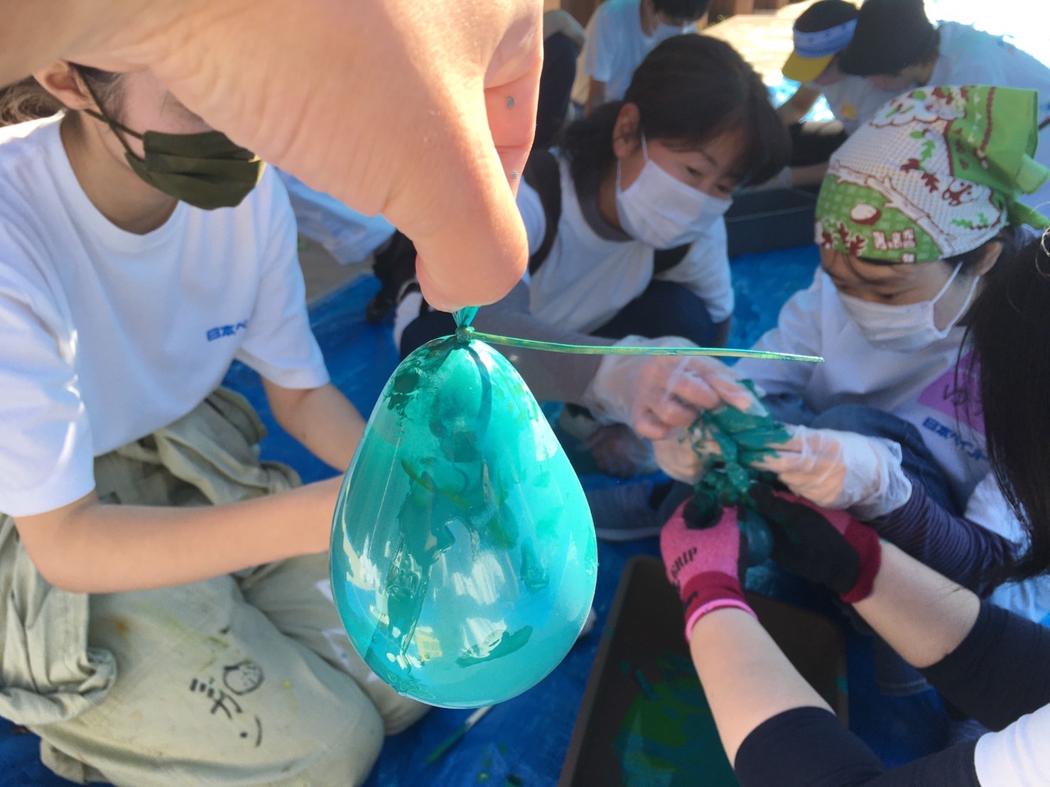 みんなでつくったペンキ風船を、
