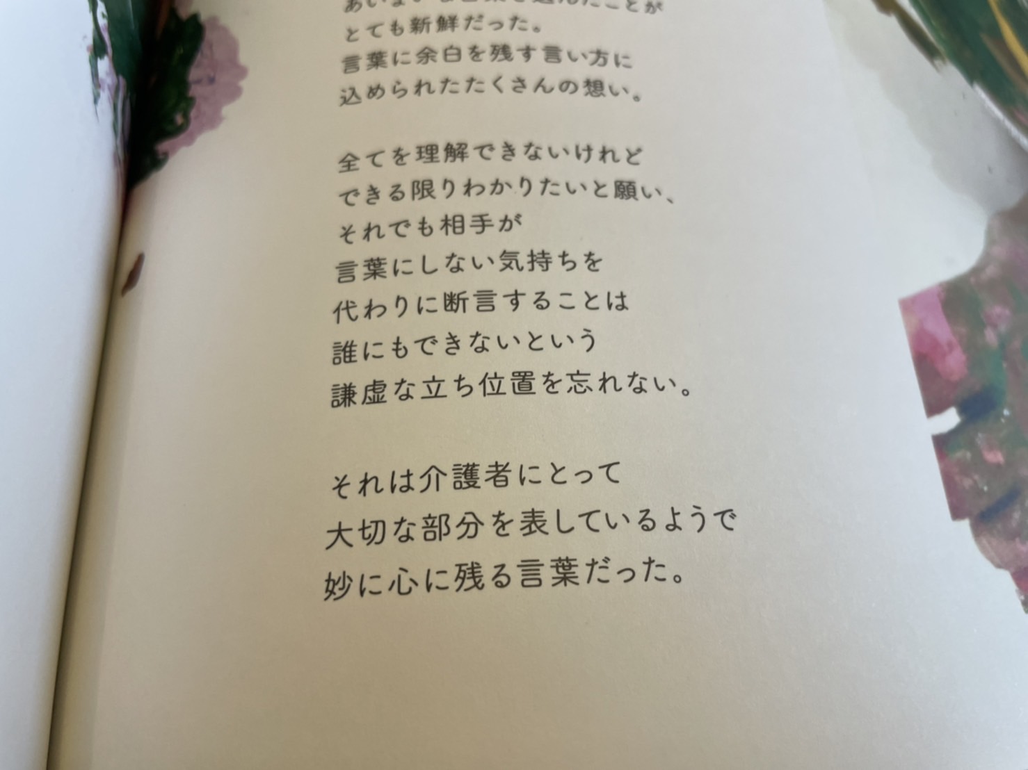 「全てを理解できないけれど できる限りわかりたいと願い、それでも相手が 言葉にしない気持ちを 代わりに断言することはできないという 謙虚な立ち位置を忘れない。」ふ、ふかい・・・。愛だな。