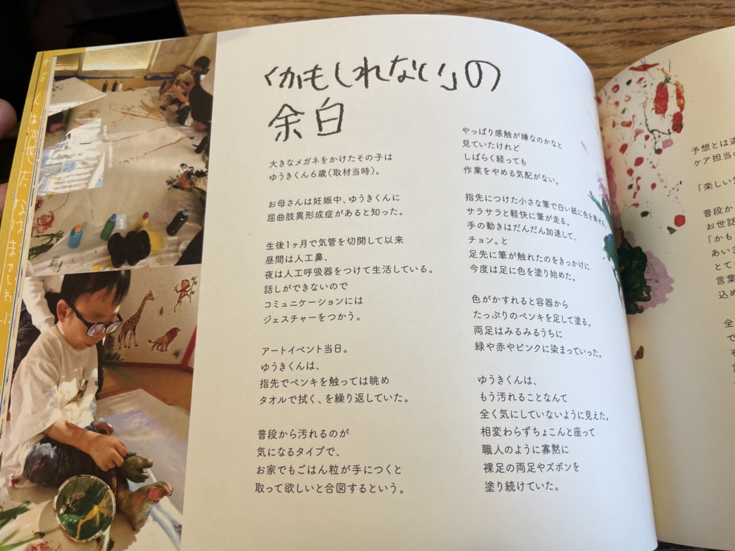 「信頼する家族にさえ素直に息子を任せることができませんでした。」「多くの方々に障害を抱える人と関わってもらいたい。まずは彼らについて知ってもらう機会をつくろう。」「子どもたちと楽しみながら、表現活動を続けています。」BOOKより
