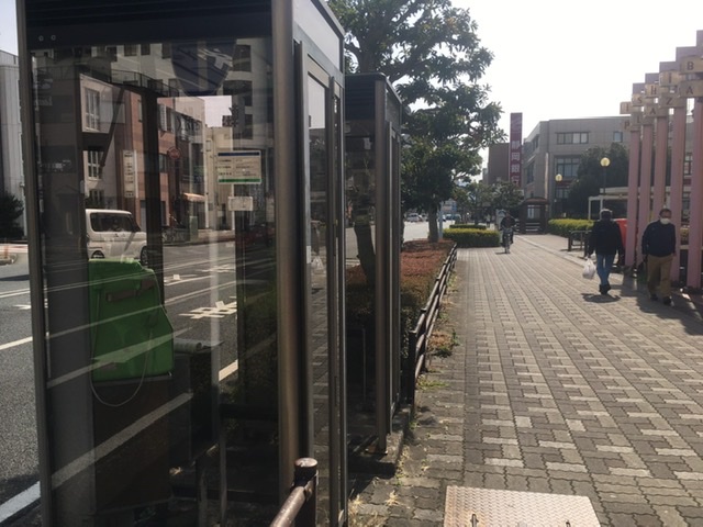 中からイシバシのGEORGE'Sが見えた2連公衆電話、無くなってる。リコー通り(沼津市高島本町)