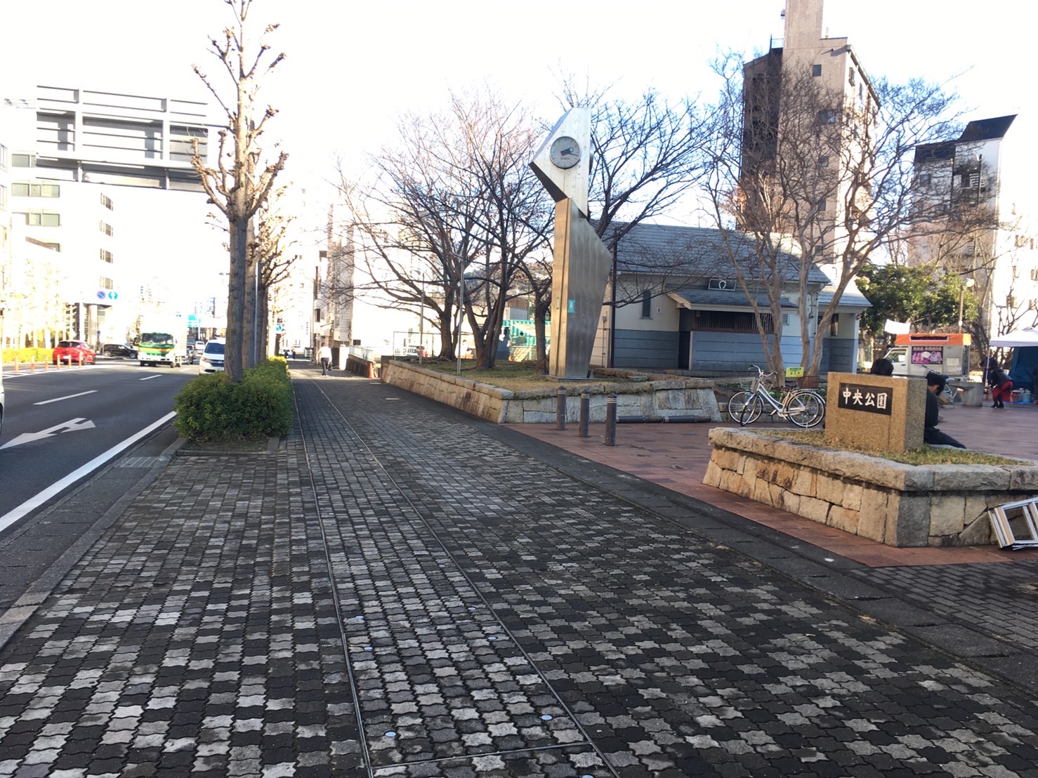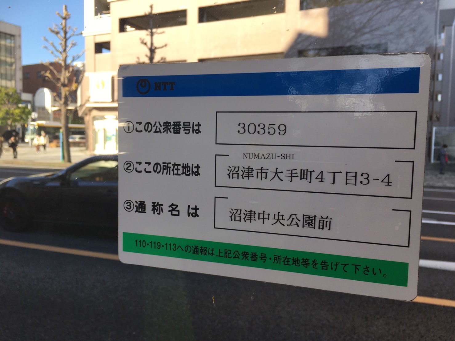 通称名は【沼津中央公園前】。道路の向こう側には松浦酒店。