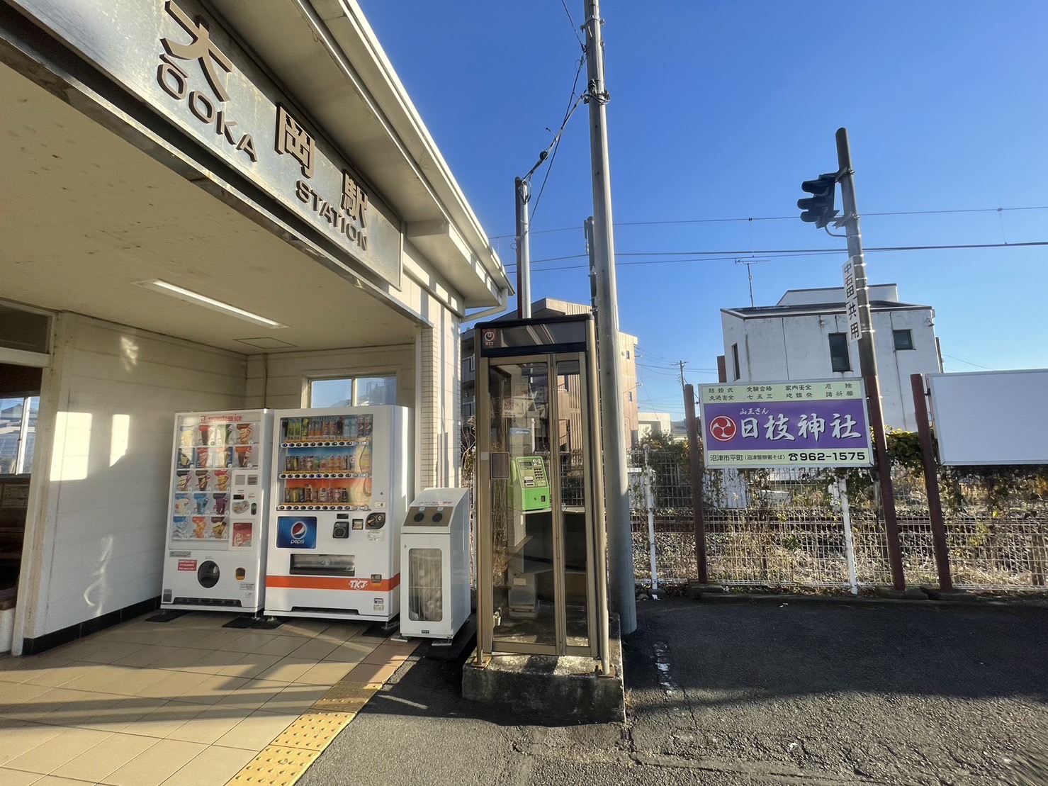 【公衆電話】御殿場線の大岡駅のところで発見。沼津でイチバン線路に近い公衆電話…かもしれない。【具体的にはJR大岡駅前】