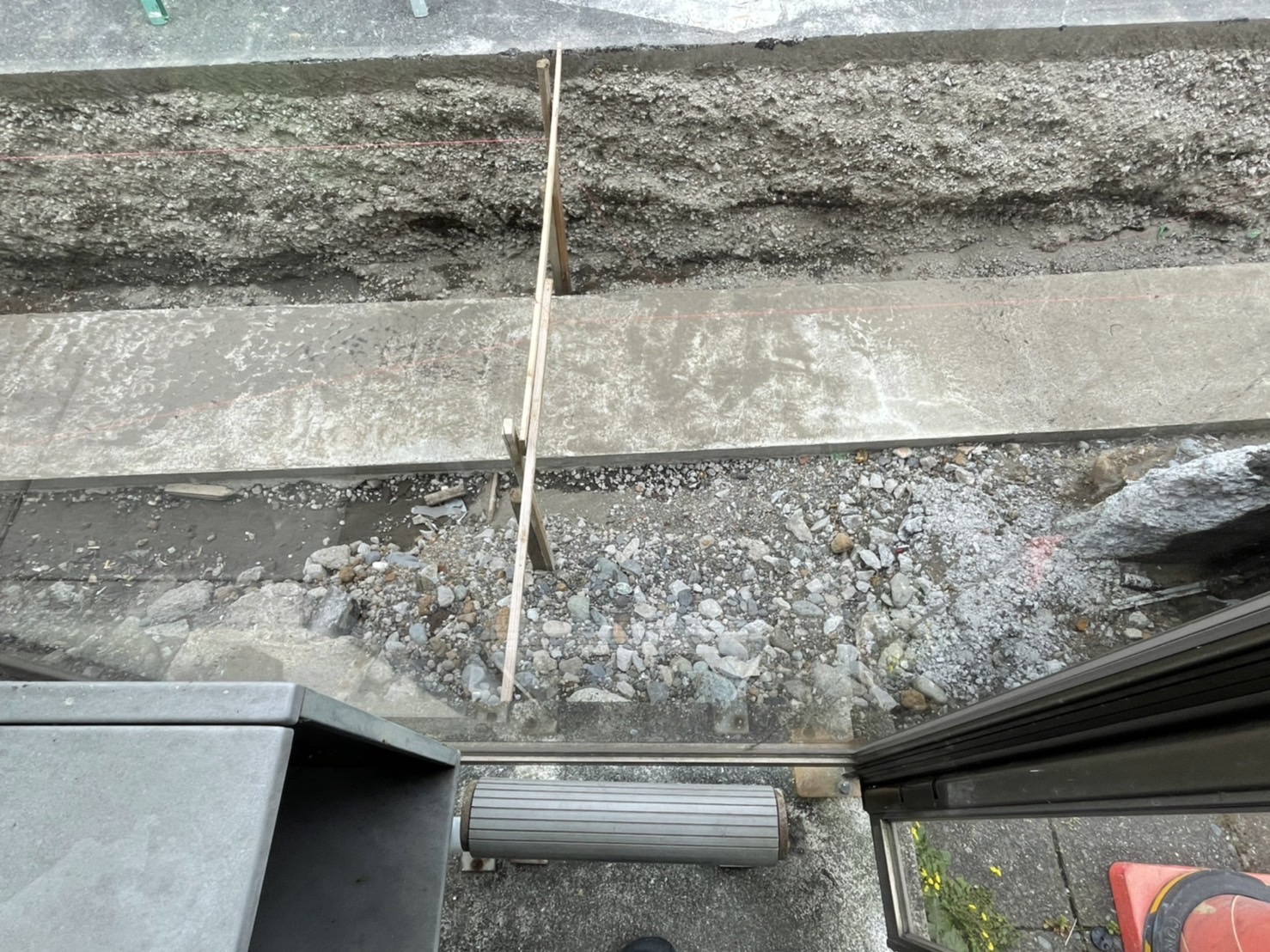 車道を工事している
