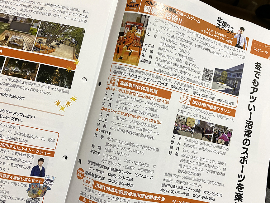 さらにページをめくっていくと、冬でもアツい!沼津のスポーツの話題。駅伝とかマラソンの情報も増えてきました。