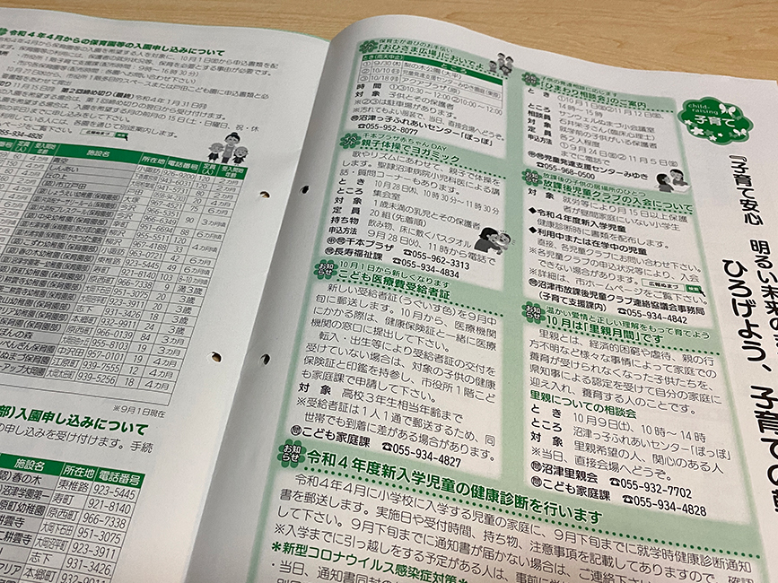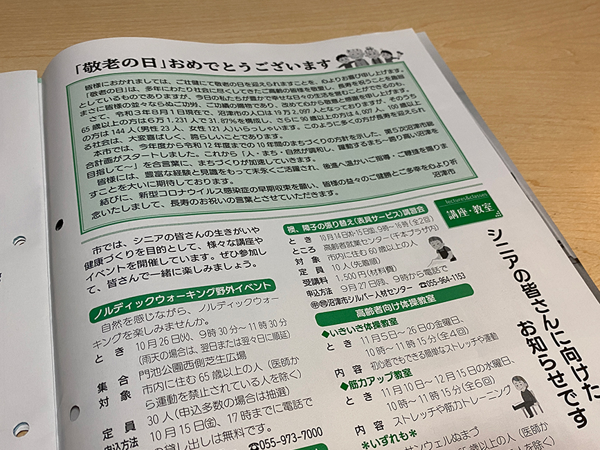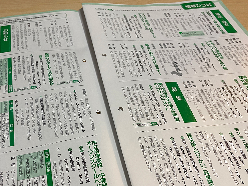 沼津市のほぼ全世帯に配布されている広報紙だけあって、全世代を網羅する情報がたくさん。