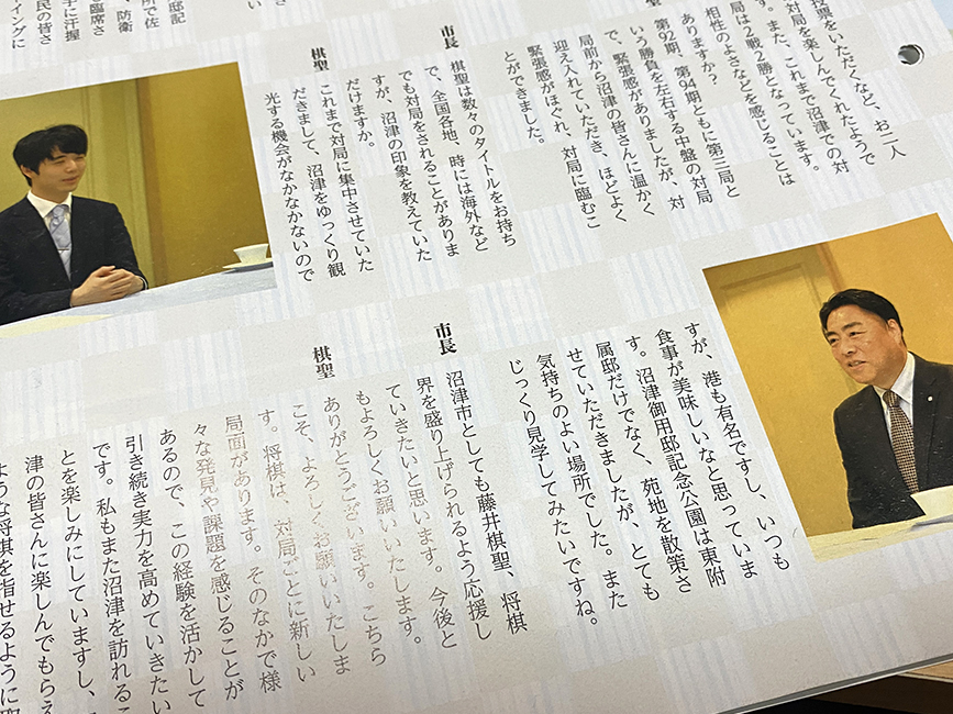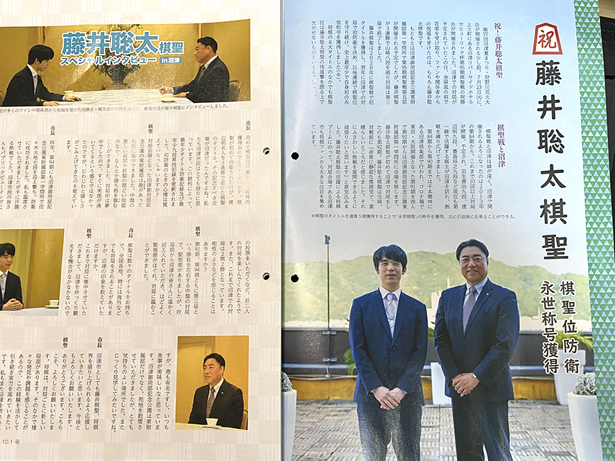 今回はなんとビッグネームの登場!7月に来沼した藤井聡太棋聖。永世棋聖の称号を獲得し、沼津で祝勝会・報告会が開催されたという話題。御用邸と思われる表紙はお散歩したくなりすね。藤井棋聖も歩いたのかしら。